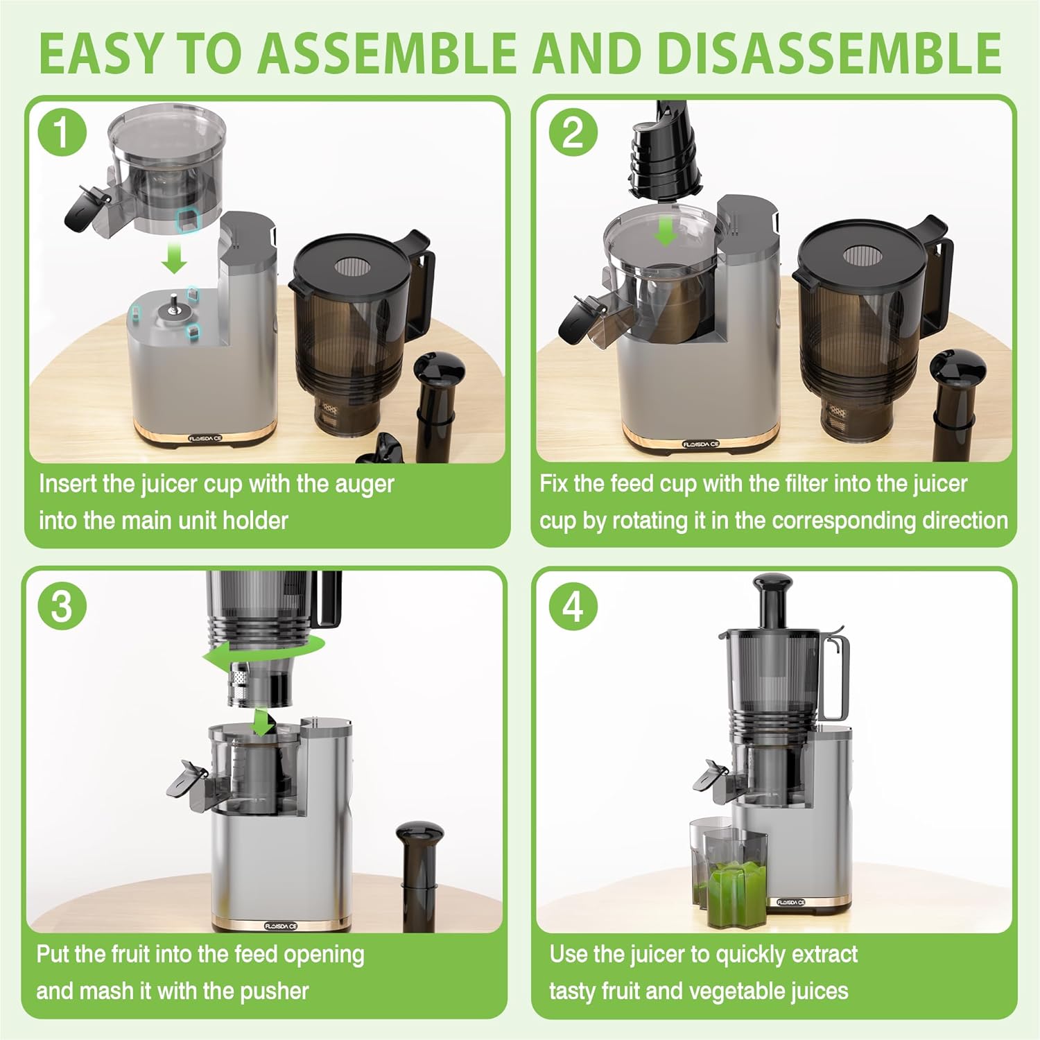 - 【Easy Disassembly and cleaning】 Our juice extractor is easy to assemble and disassemble with 3 main parts in seconds, and easy to operate with one-button control. Also, the juice maker machine packaged with push rod and cleaning brush for quickly clean, saving your time and energy.