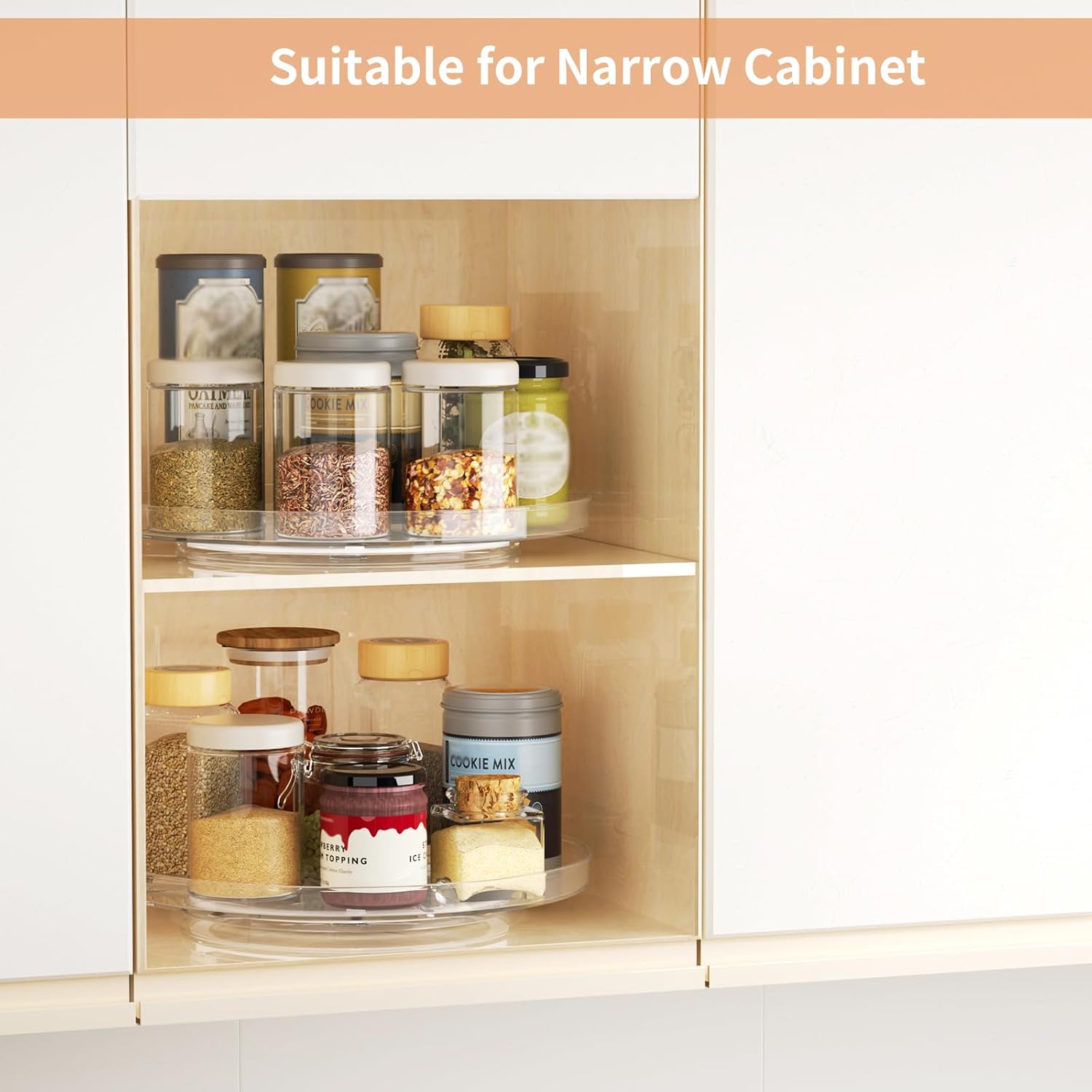 2 Pack Lazy Susan Organizer Turntable, Clear 9 Inch Rotating Organizer Tray for Cabinet Table Top, Round Non-Skid Refrigerator Lazy Susan, Kitchen Storage for Pantry Countertop Bathroom, Spice Rack