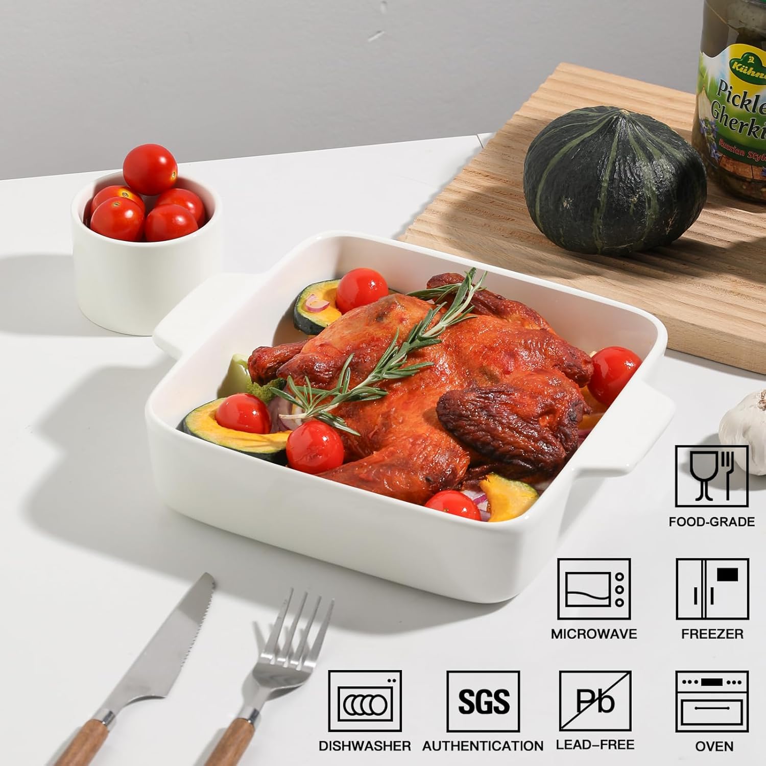- Generous 8x8 Canvas for Culinary Creativity - Roast hearty veggie sides, bake gooey brownies, craft layered lasagnas, or whip up breakfast bakes. This versatile size handles family favorites with room to spare, yet fits standard ovens perfectly