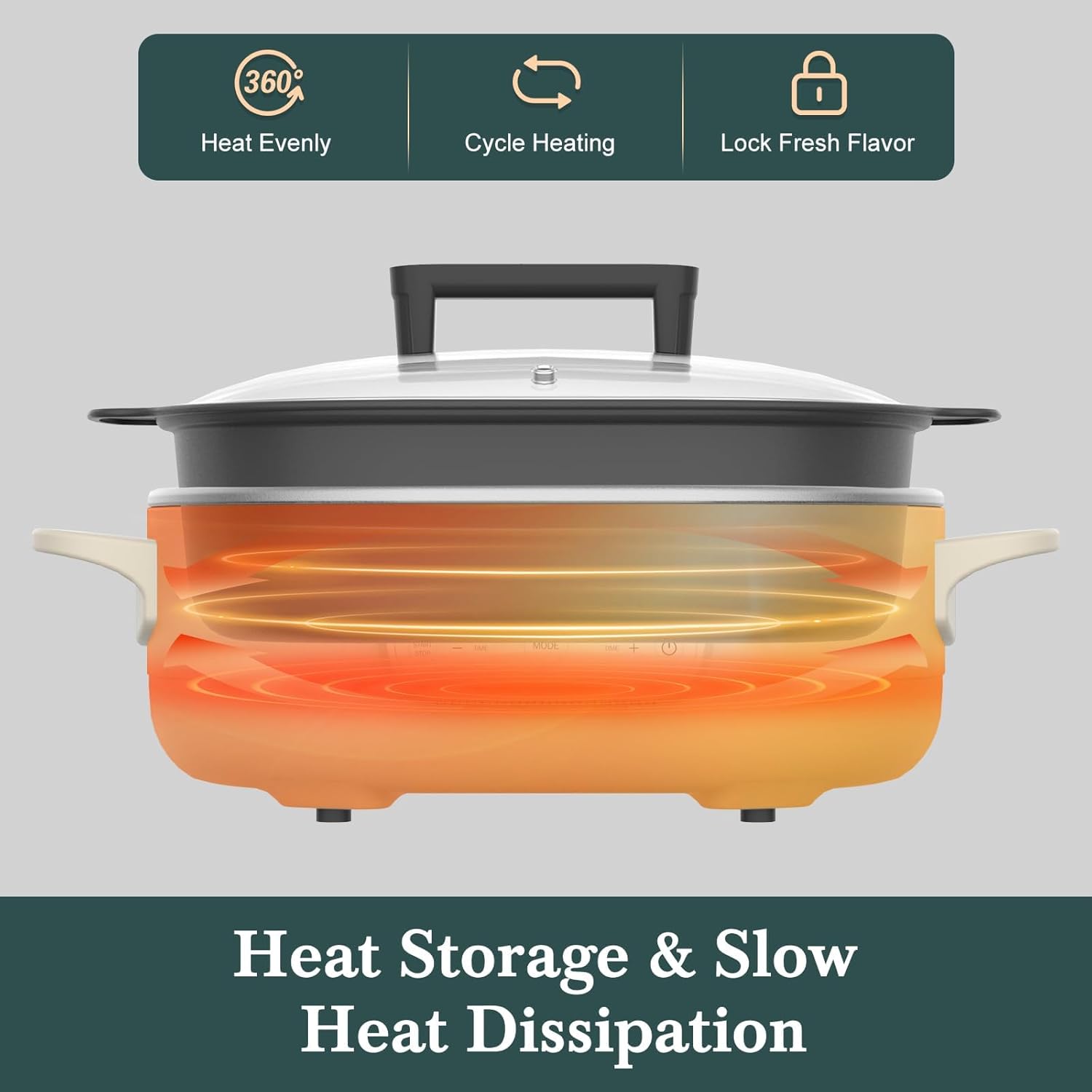6 Quart Slow Cooker, with 8-in-1 Multi-Cooker, Casserole Programmable crock pot, Dutch Oven, Pasta, Nonstick, Oven Safe Pot to 500°F, Oatmeal