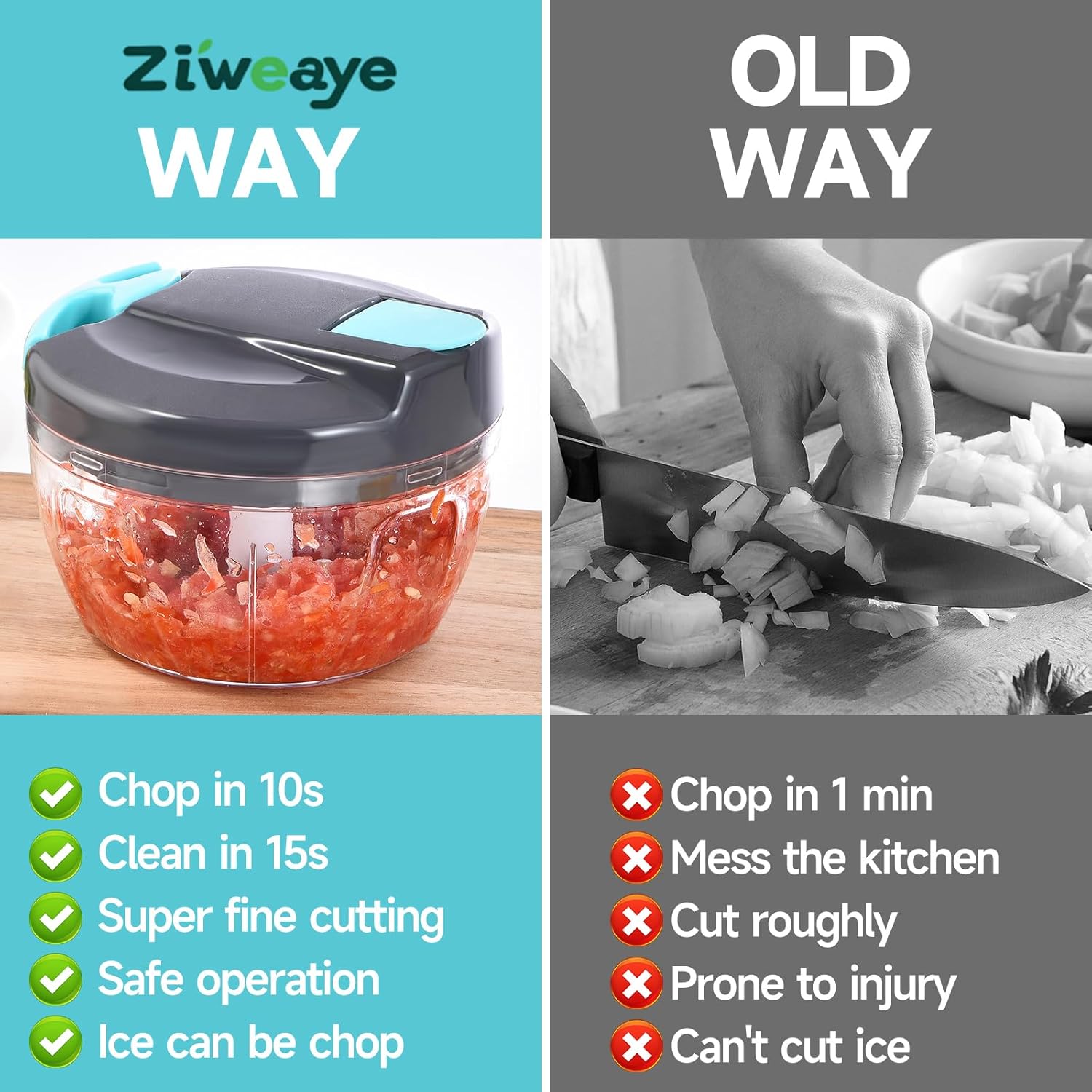 - Our pull food chopper meets most of your kitchen needs: The manual food processor is ideal for chopping onion, garlic, ginger, vegetables, fruit, nuts, herbs, meat, tomato, avocado and more for salsa, pesto, smoothie, guacamole, ground beef and more,Chopped Onions in seconds without crying, and chopping garlic without smell.