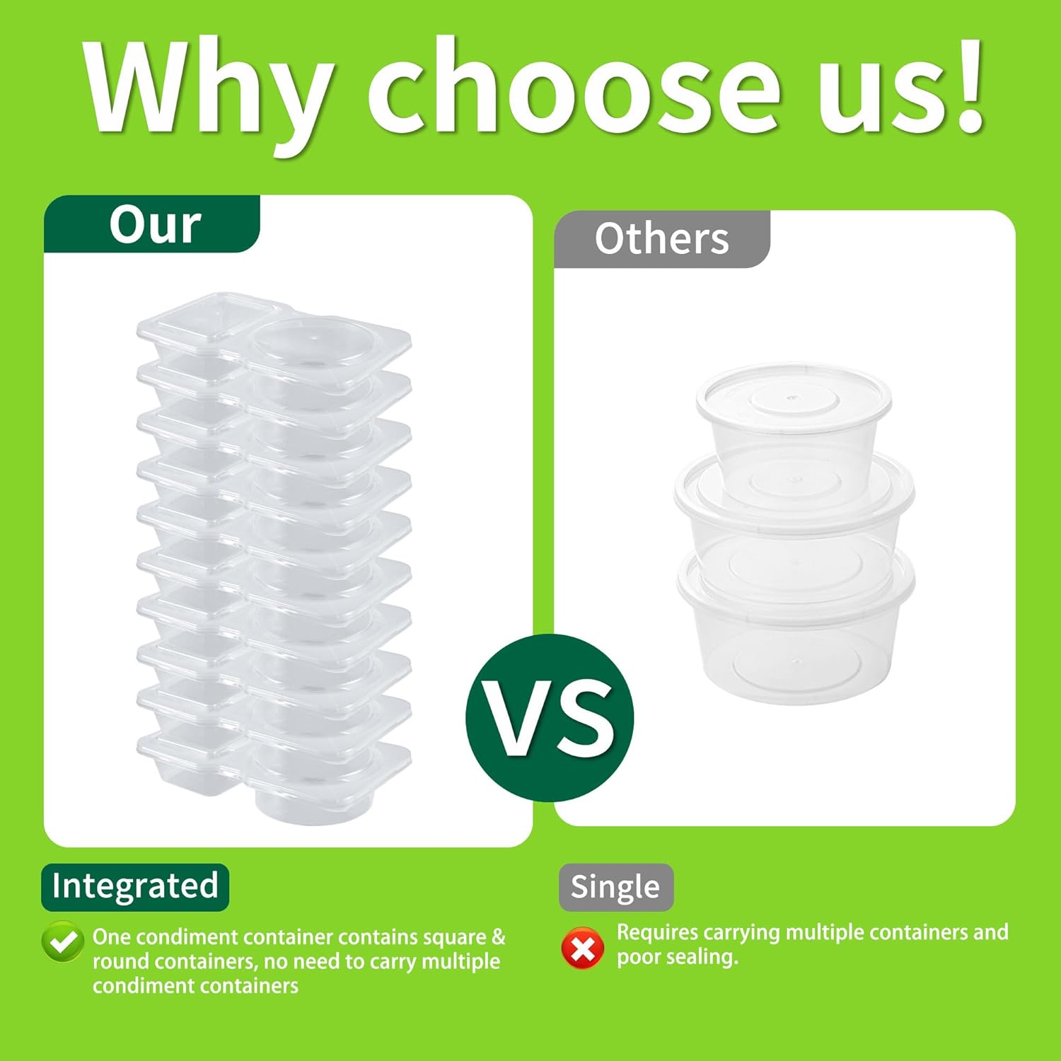 - Various Uses: These reusable snack containers with lids are nice for many uses--- ketchup, road trip snacks, Veggies, dip or (dry) fruit, crackers, oil or mayo, vinegar, etc. It can be used as a portion food measuring, for leftover storage, and it's a nice condiment for easy storage in the refrigerator