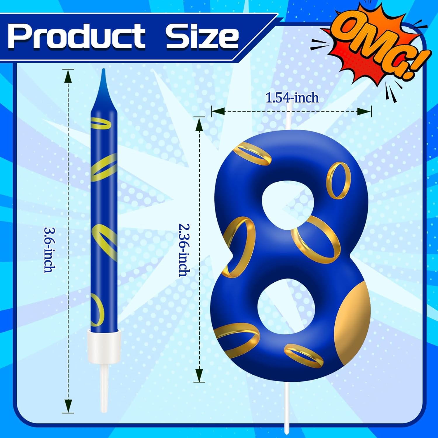13PCS Birthday Cake Candles Set - Blue and Golden Ring Number Candles with Vibrant Designs for Boys & Girls, Theme Birthday Party Decorations, Cake Toppers for Theme Parties(Number 8)
