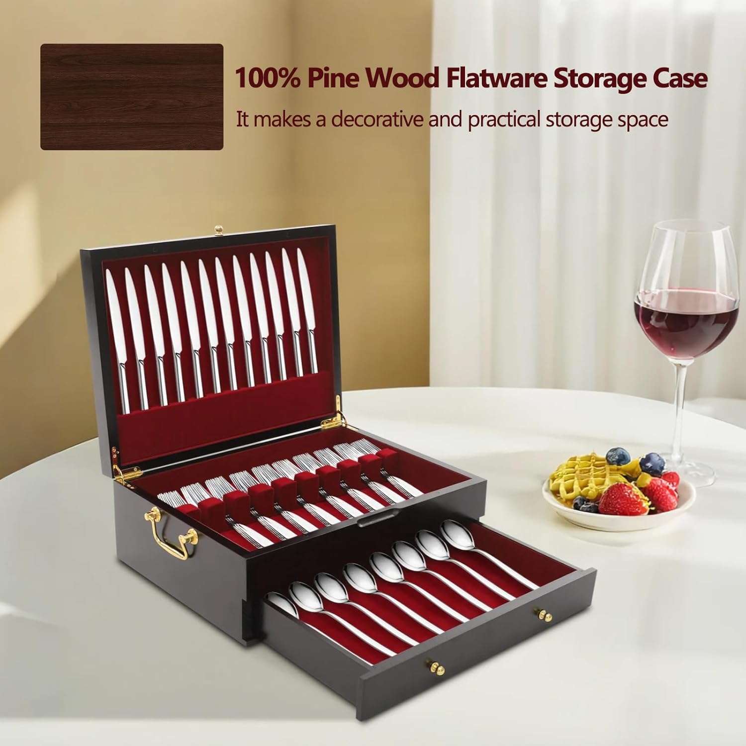 - Build to Last: Crafted from premium flannelette and sturdy pine wood, our silverware storage box is impact-resistant and designed to withstand daily use, ensuring long-lasting protection for your precious utensils.
