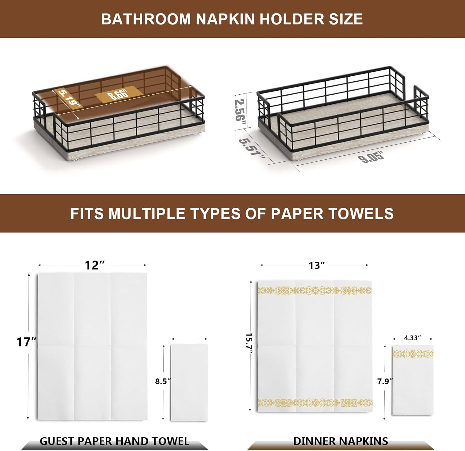 - Quite Versatile: This guest towel holder hold paper towels in the guest bathroom for hand drying; hold paper bath towels for your powder room, easy to retrieve towel when needed; It can also be used as a lunch napkin holder, looking very nice on the dining table