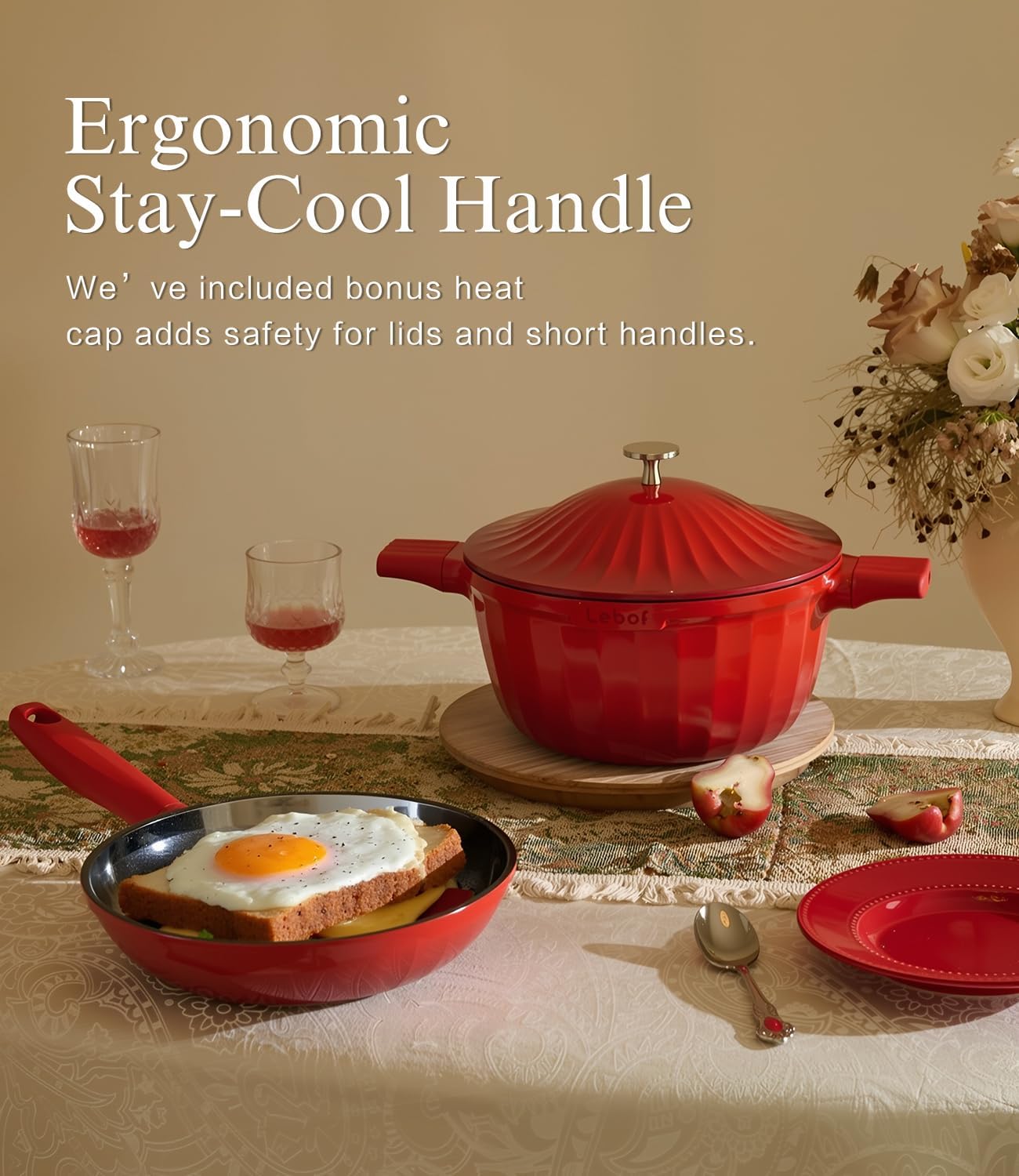 - Thoughtful Design for Everyday Ease: From streamlined ridges that lock in flavor to a raised notch that keeps the lid steady while boiling—every design choice serves a purpose. Dual-sided spouts make pouring easy from either side, and the stay-cool handle with heat cap adds comfort and safety.