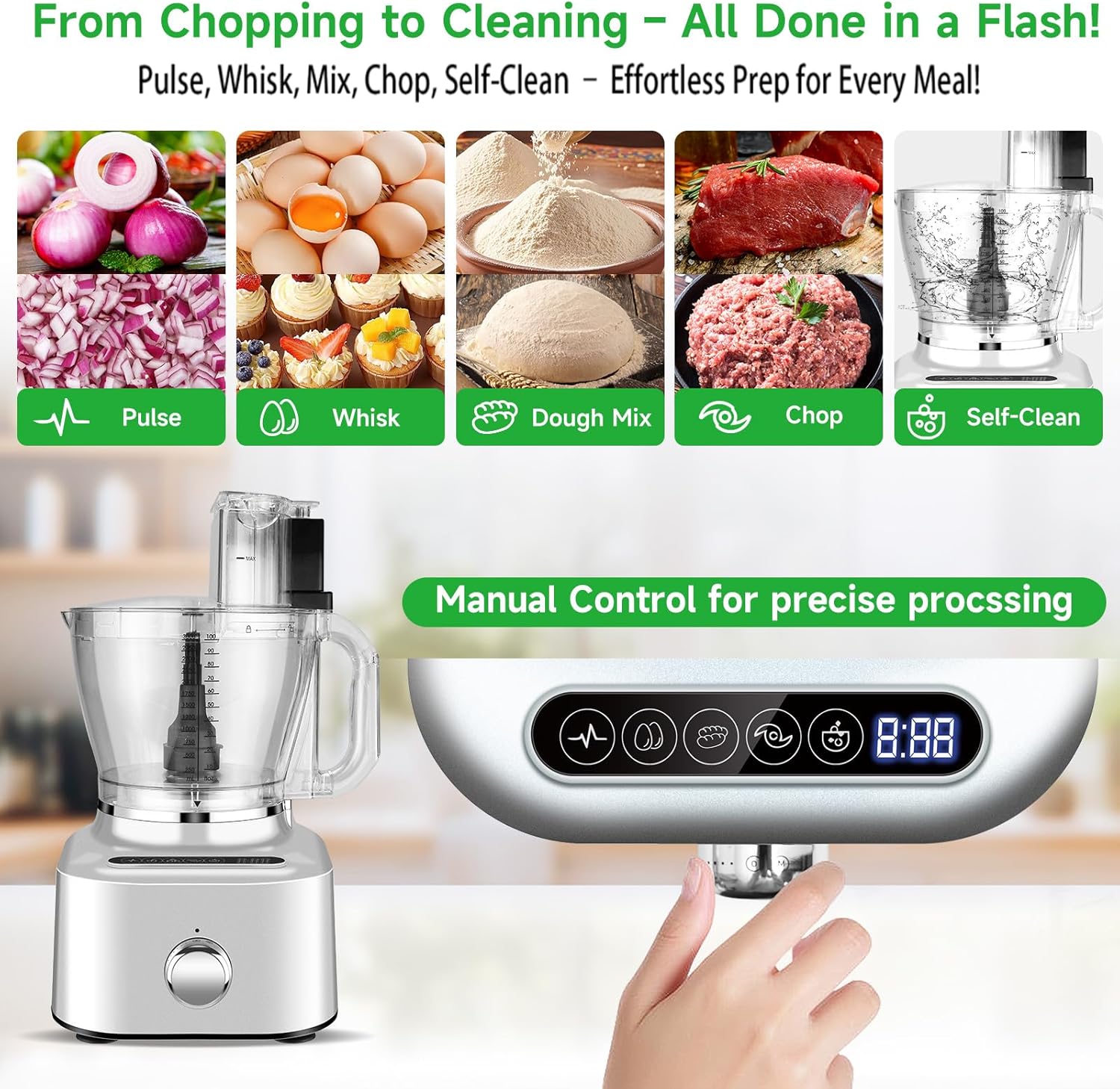- 【Professional-Grade 11-in-1 Performance for All Cooking Needs】The Homtone 16-cup food processor is a heavy-duty kitchen powerhouse that chops, slices, shreds, kneads, dices, and even whips egg whites or cream effortlessly. Whether you're prepping veggies for a salad, kneading dough for homemade pizza, or making creamy mashed potatoes, this large food processor handles it all. Its 650W motor powers through tough ingredients, making it ideal for big families, meal preppers, and entertainers who need high-volume food processing without the hassle.