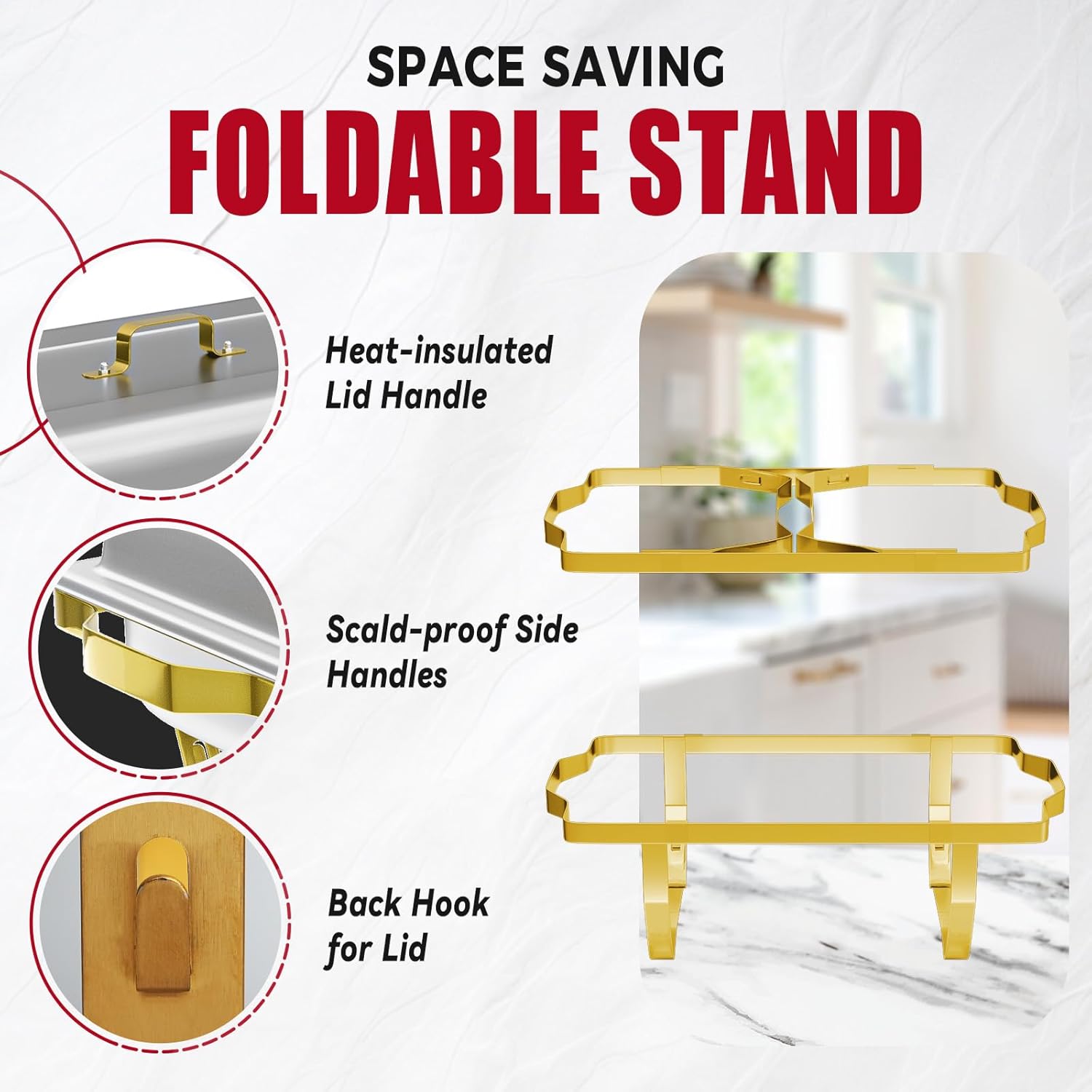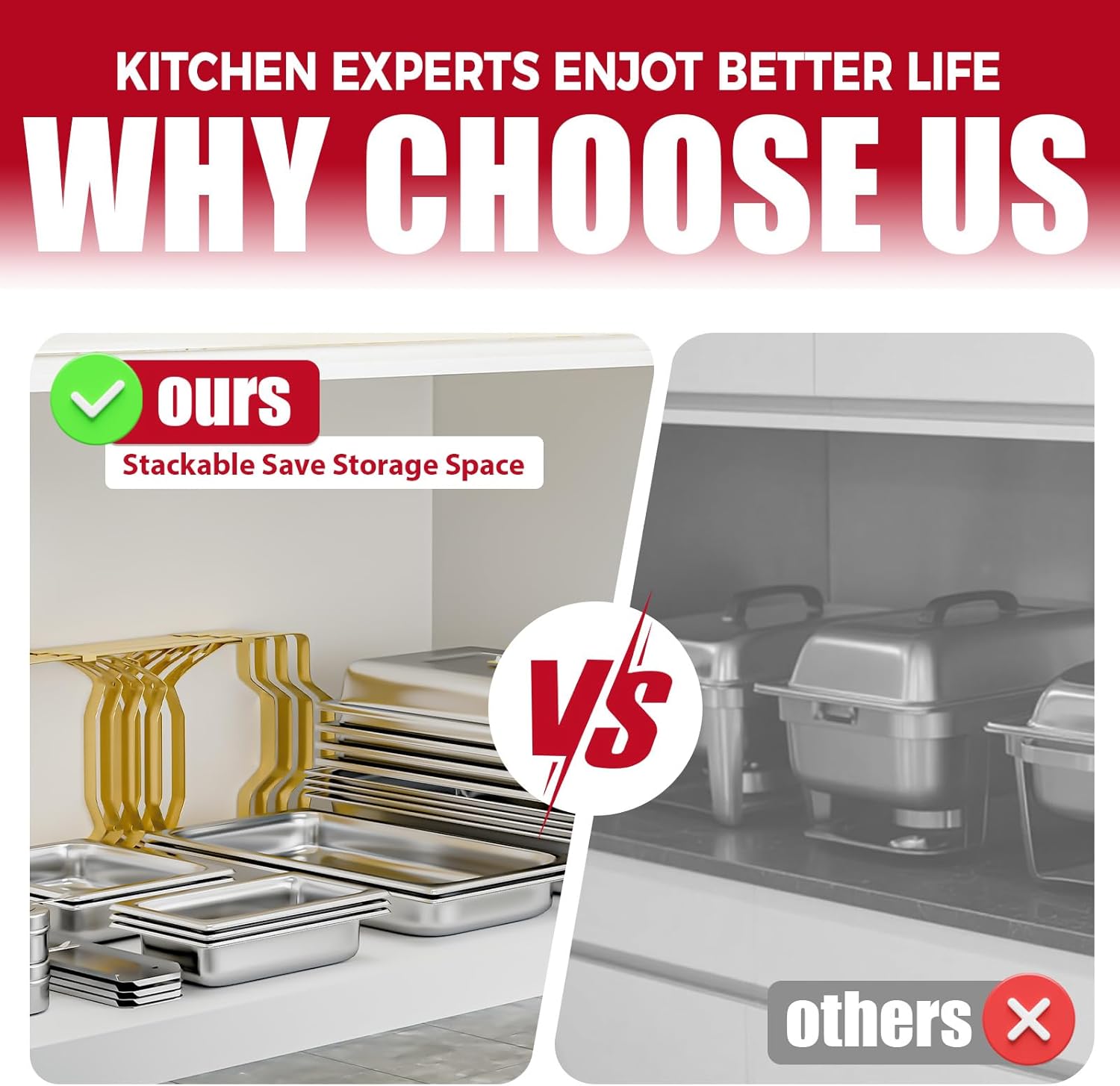 - Functional Design: No matter the heat-insulated handles or sturdy frame, it makes the chafer perform in functionality. All of the food and water pans are stackable which makes the set easy to transport and saves space for storage. Maintain your delicacy’ at the serving temperature for the buffet event with it!