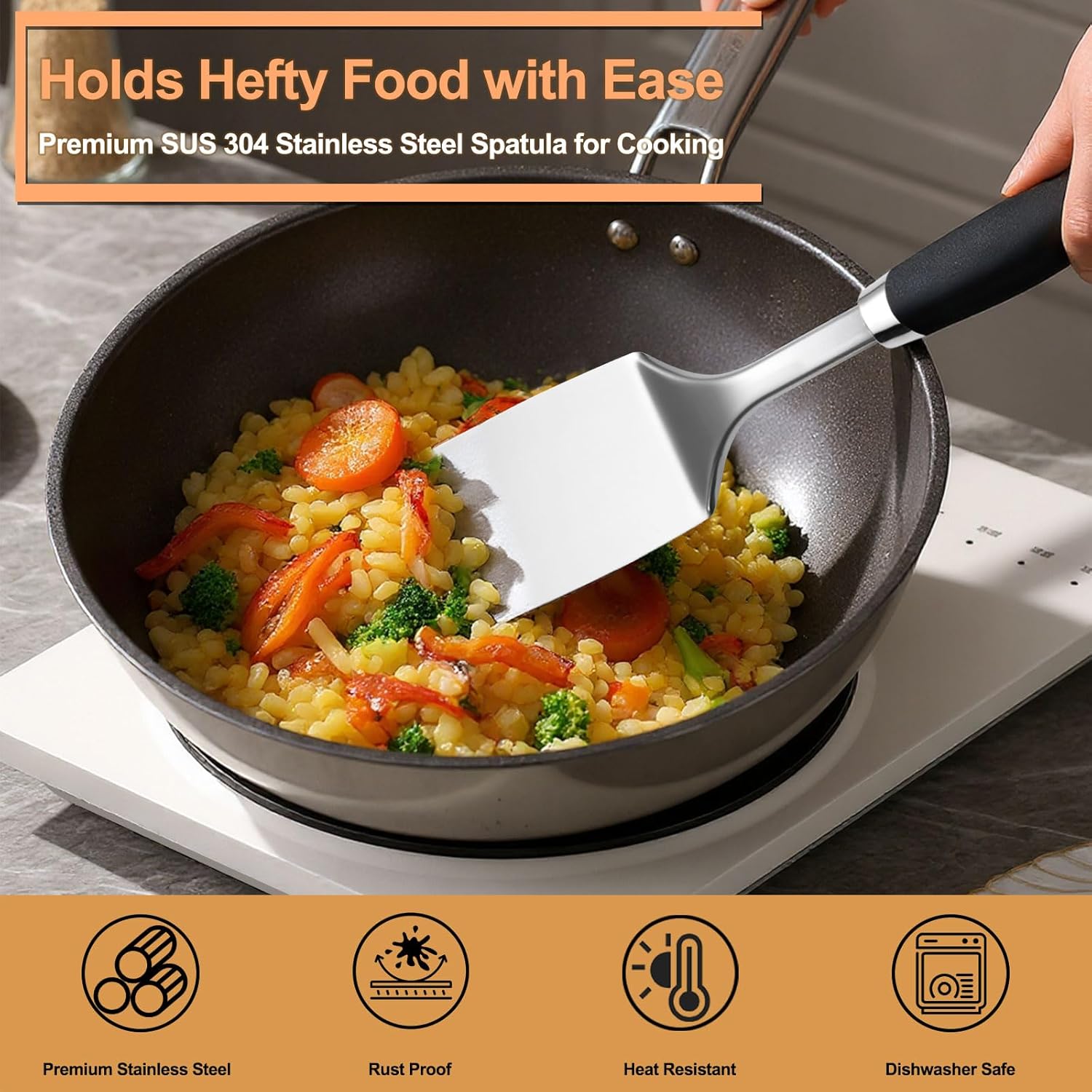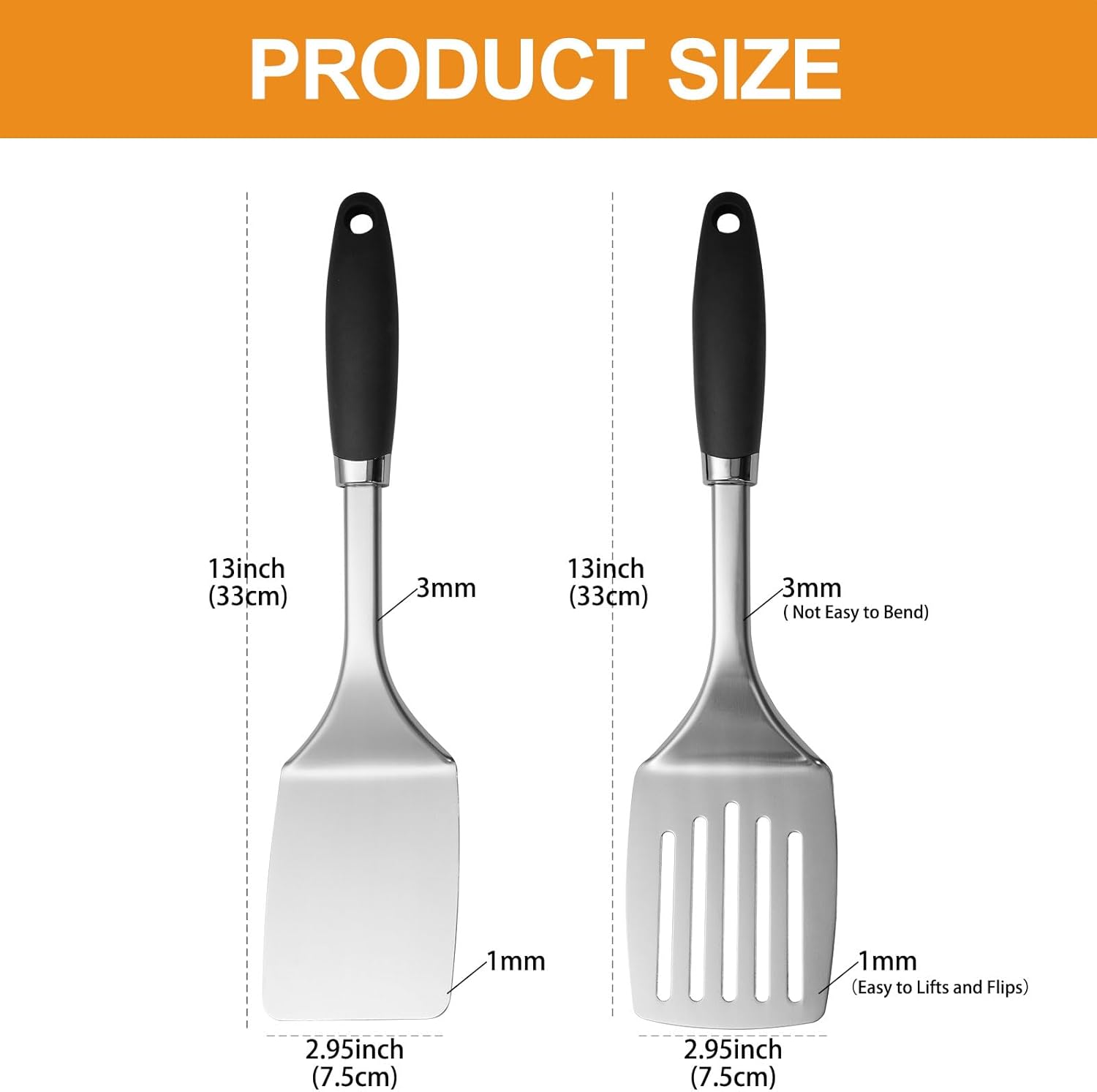 - Premium Material: The high-quality spatula turners are made of SUS 304 stainless steel with sturdy, antirust, durable, which is keeps you away from the trouble of kitchen utensils rusting or breaking.
