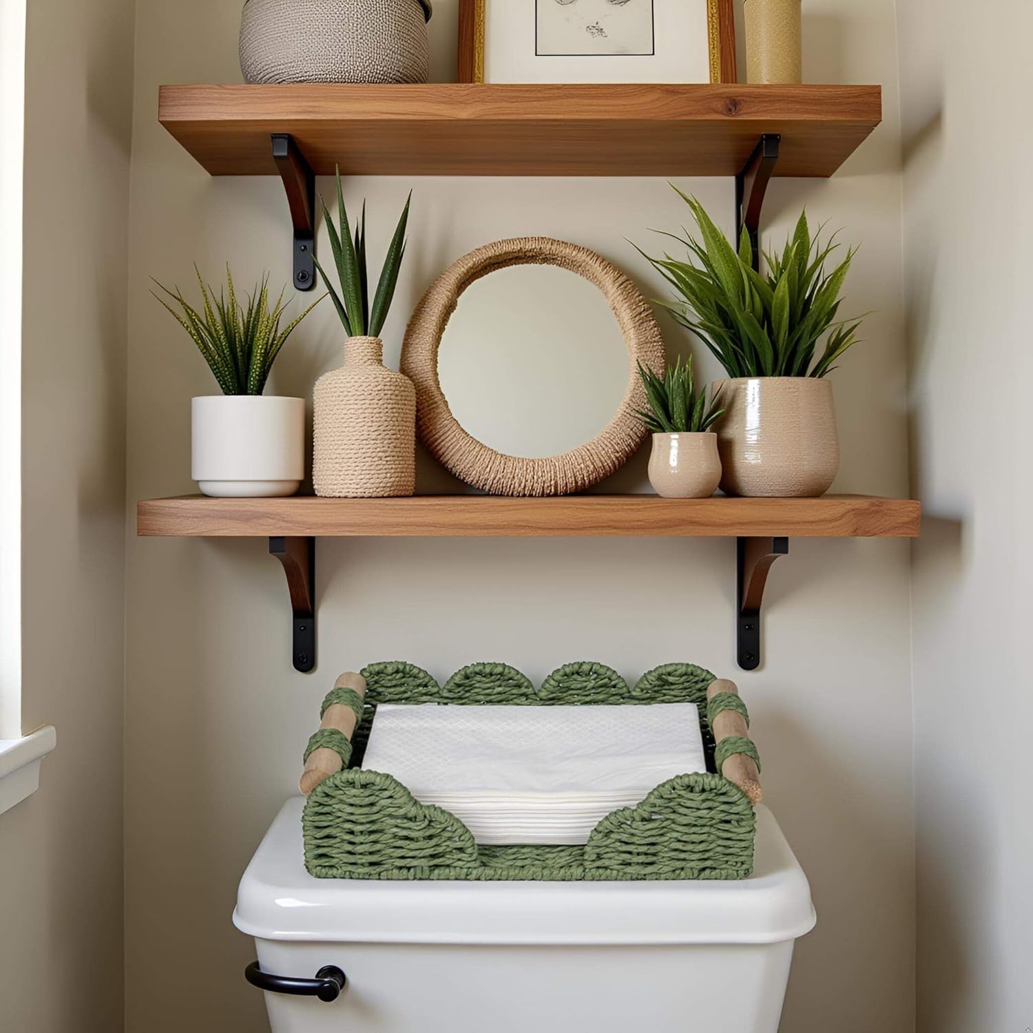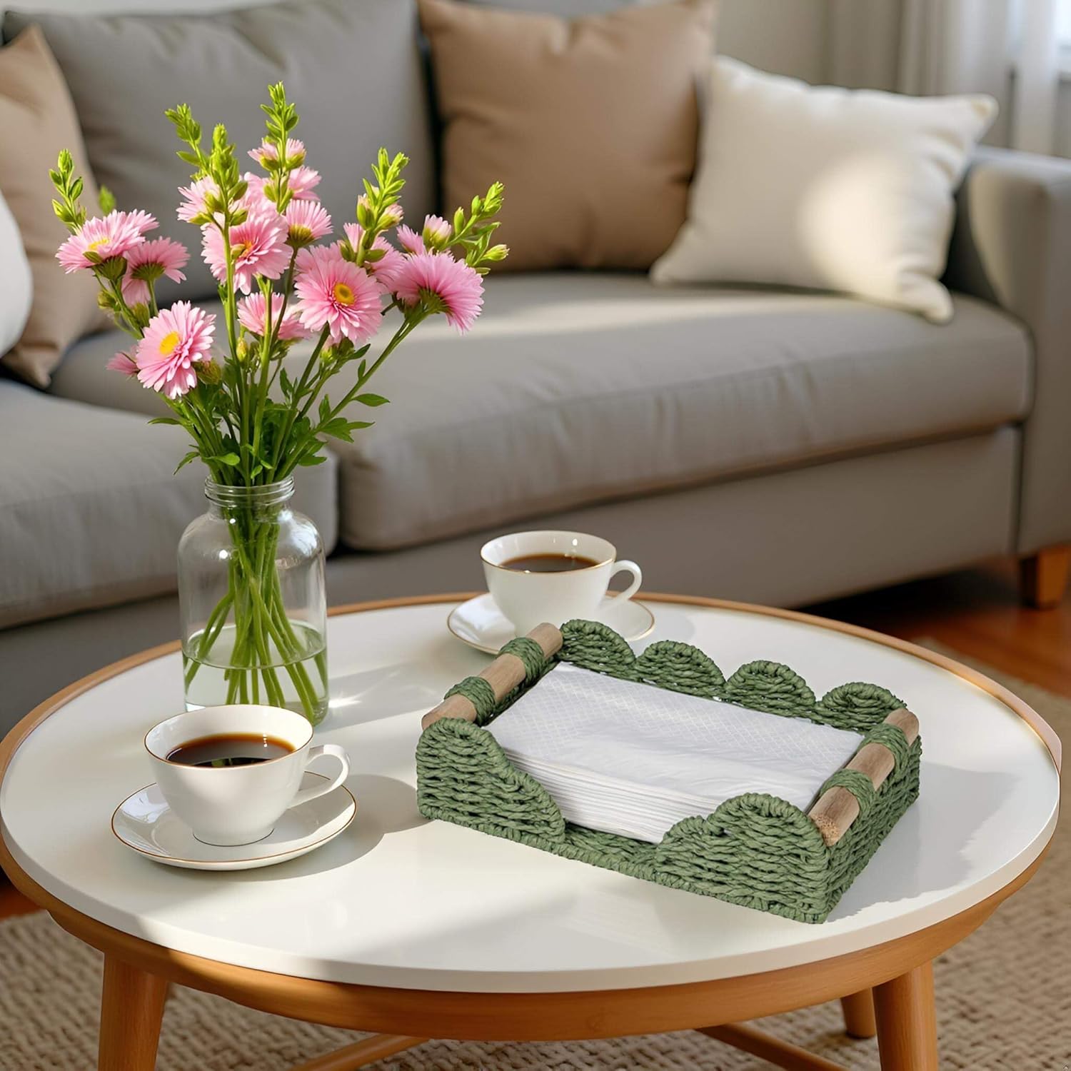 CubesLand Scalloped Napkin Holder for Bathroom Decor, Paper Rope Flat Napkin Dispenser Guest Towel Tray for Bathroom, Farmhouse Warm Napkin Holder for Table Dining Room Home Kitchen Decor, Green