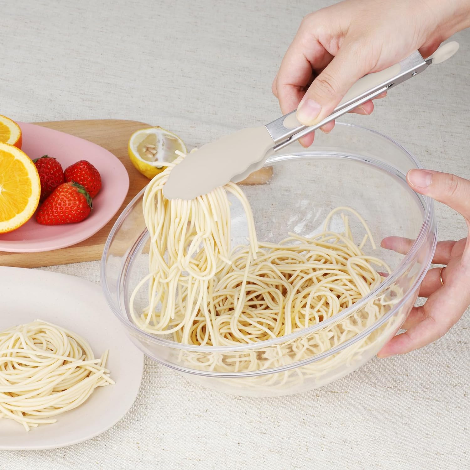 - EASY TO USE: The cooking tongs' handle is cushioned with silicon, good for thumb rest and ensures good grip and control. The Food Grade silicon tongs tip is heat resistance 600°F and less prone to scratch the pan. Easy to rinse, dishwasher safe.