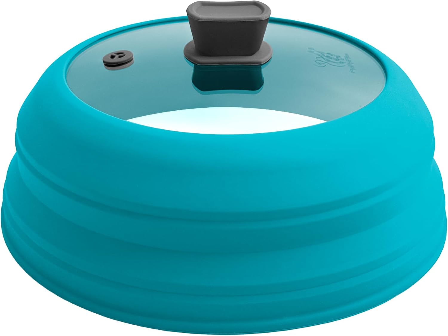 Microwave Splatter Cover for Food Collapsible Glass Microwave Cover Silicone Splatter Guard Dishwasher Safe Splatter Lid for Plates, Bowls, Pots & Stovetop Cooking 11.8" Blue