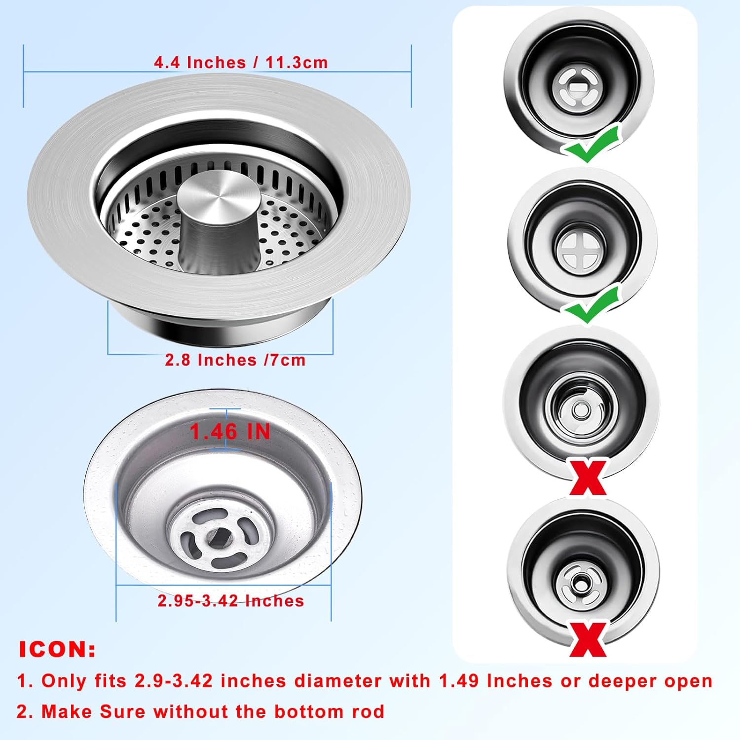 - Universal Fit & Secure Seal: Designed to fit most US Standard 3-1/2'' Drain Holes, With silicone seal ring attached with this plug cover creates a tight seal to hold waters, or sink protector to stop odors or bugs climb into your kitchen. Perfect for kitchen sinks, bathroom basins, or as part of your home appliances protectors set.