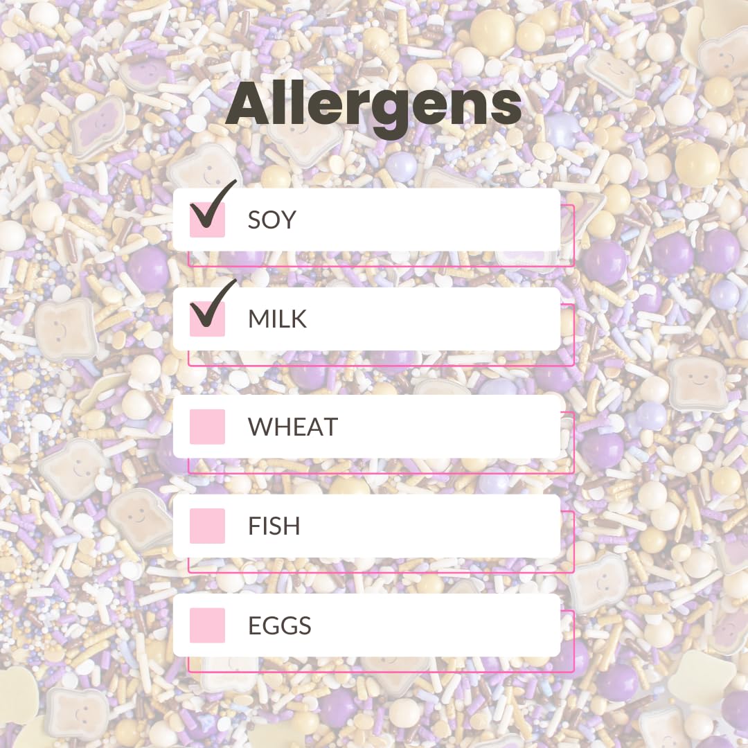 - Allergen & Safety Notice: Made in a facility that processes wheat, eggs, milk, soy, and tree nuts. Some blends contain hard sugar pearls and dragee rods, which may pose a choking hazard for children under 1
