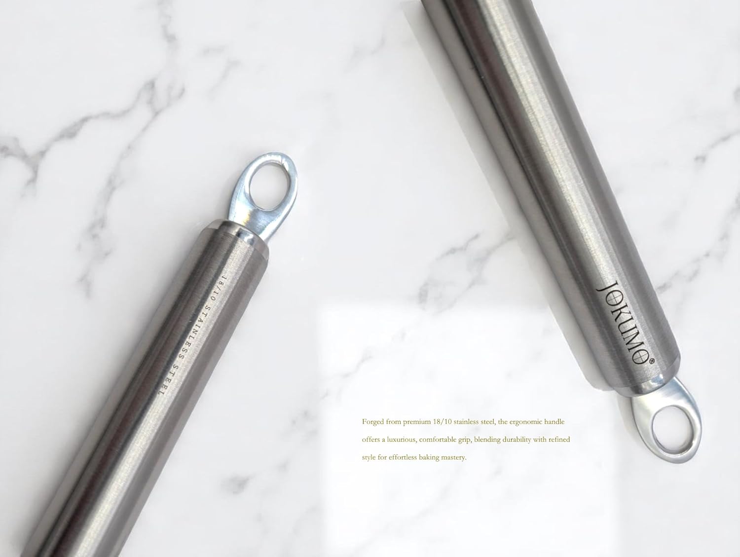 - Ergonomic & Balanced Design: Weight distributed to the handle for effortless control; the premium brushed finish enhances grip and adds sophistication to your baking tools.