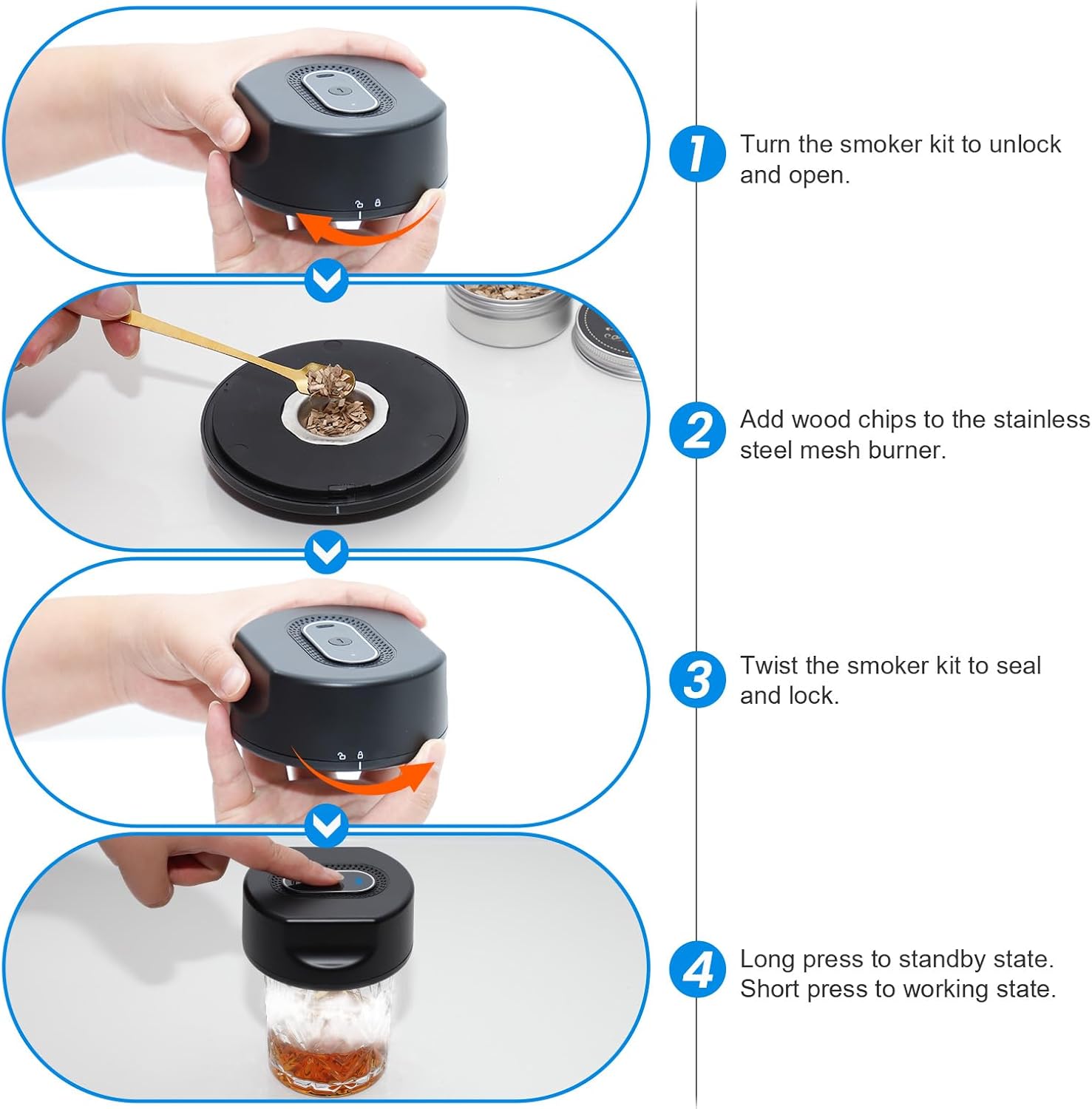 - 【⚡ 3-Second Smoke & 6 Premium Wood Flavors】Professional old fashioned smoker kit — turbo 2000 RPM motor creates thick smoke in 3 seconds for instant bourbon/cocktail infusion. Craft signature smoked drinks with 6 wood chips: Apple, Cherry, Oak, Beech, Pearwood, Hickory.