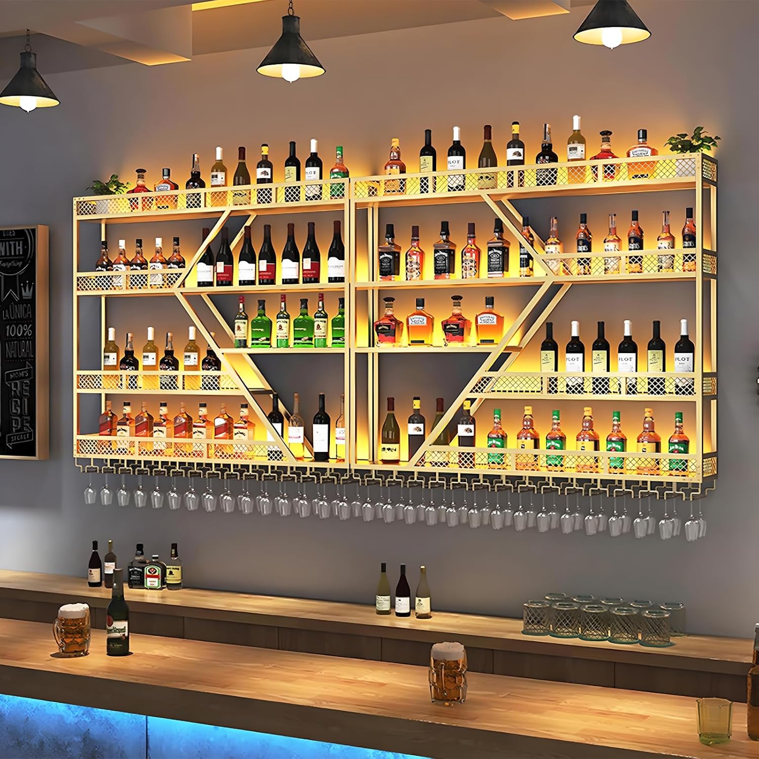 - 【WIDE USE】Our wall mounted wine rack is not only suitable for storing wine and wine bottles at home, but also can be widely used in commercial places such as bars, cafes, hotels, restaurants, commercial wine cellars and various high-end clubs. With this wine rack, you can enjoy wine and food at any time