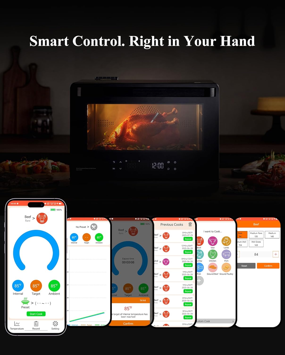 - Presets & Cooking History: With smart presets for meats, simply set your target temperature. Once the food is perfectly cooked, the system will alerts you via App and Booster. Plus, the app records the temperature curve and cooking time for review