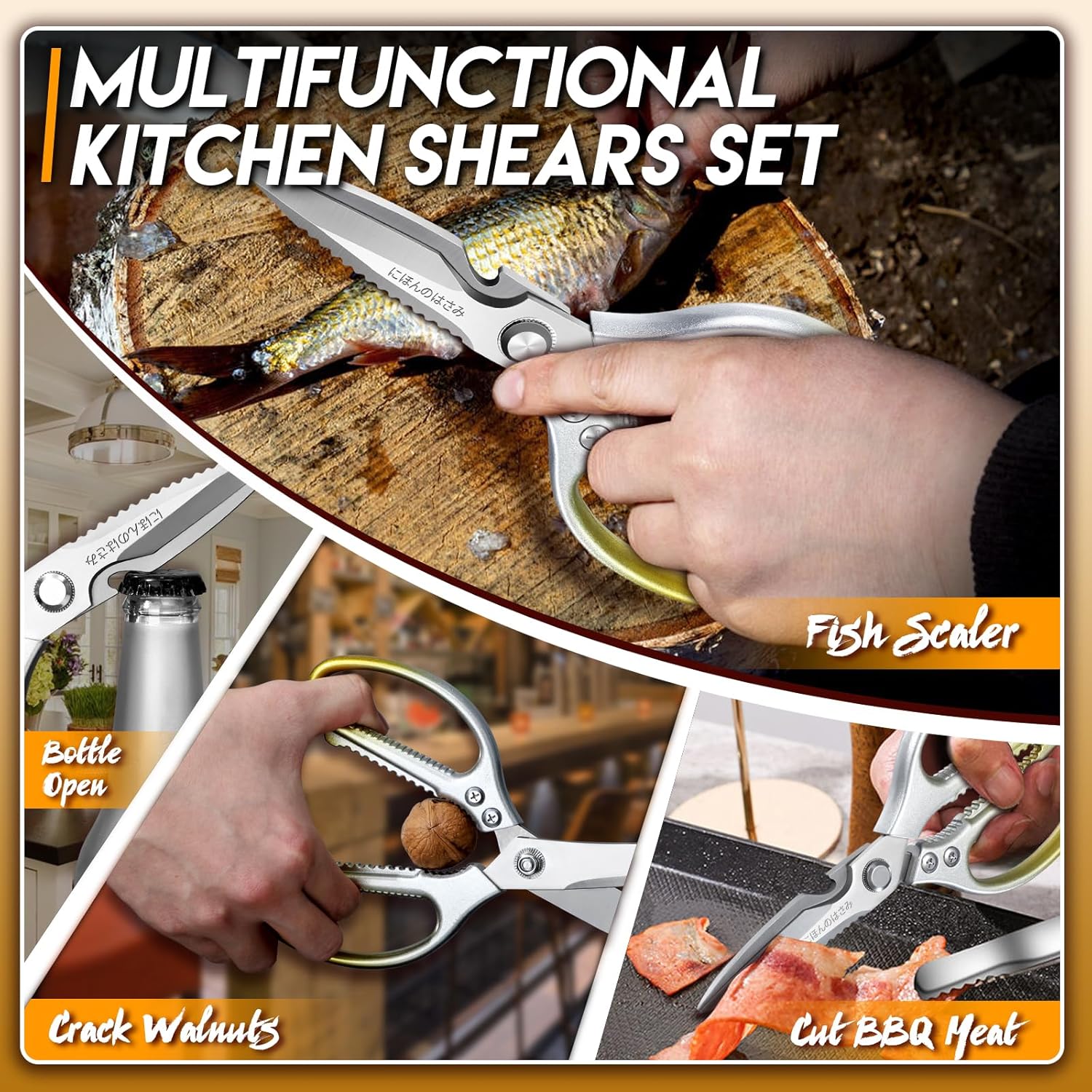 - 【Japanese Craftsmanship, Dual-Shear Excellence】Forged with Japan's legendary metalworking precision, TIJERAS' golden kitchen scissors master both delicate herb snipping and robust bone cutting. The gleaming dual blades honor centuries-old tradition while meeting modern culinary demands—turning every cut into an artful performance.