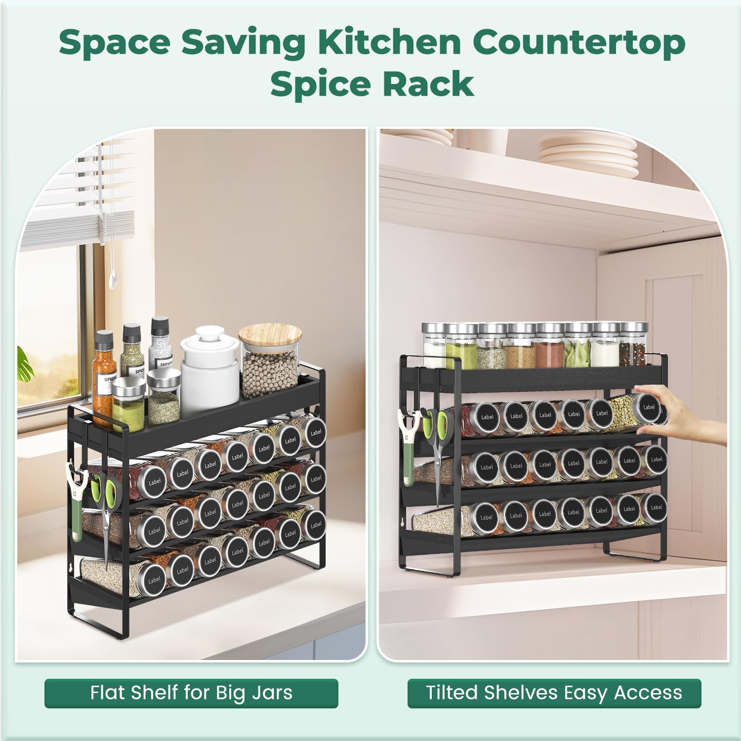 - Quick Access Design: Angled tiers make it easy to view and grab spices at a glance, while the flat top shelf is ideal for larger or taller bottles, accommodating various bottle shapes and sizes effortlessly