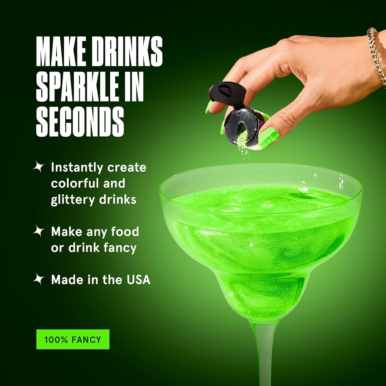 - GLITTERY FOOD & DRINKS: Fancy Edible Glitter is a fine prismatic powder formulated for both food and drink. Add edible glitter to still and carbonated beverages and spirits to create a glittery hurricane, or dust onto desserts and savory items for a sparkly finish.