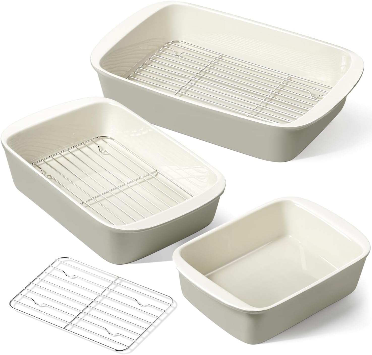 - Drip Racks for Healthier, Crispier Cooking: Each baking dish includes a matching oil-drip rack, perfect for roasting meats, bacon, and more. The racks help reduce excess grease, allowing you to cook delicious, healthier, and crispier meals