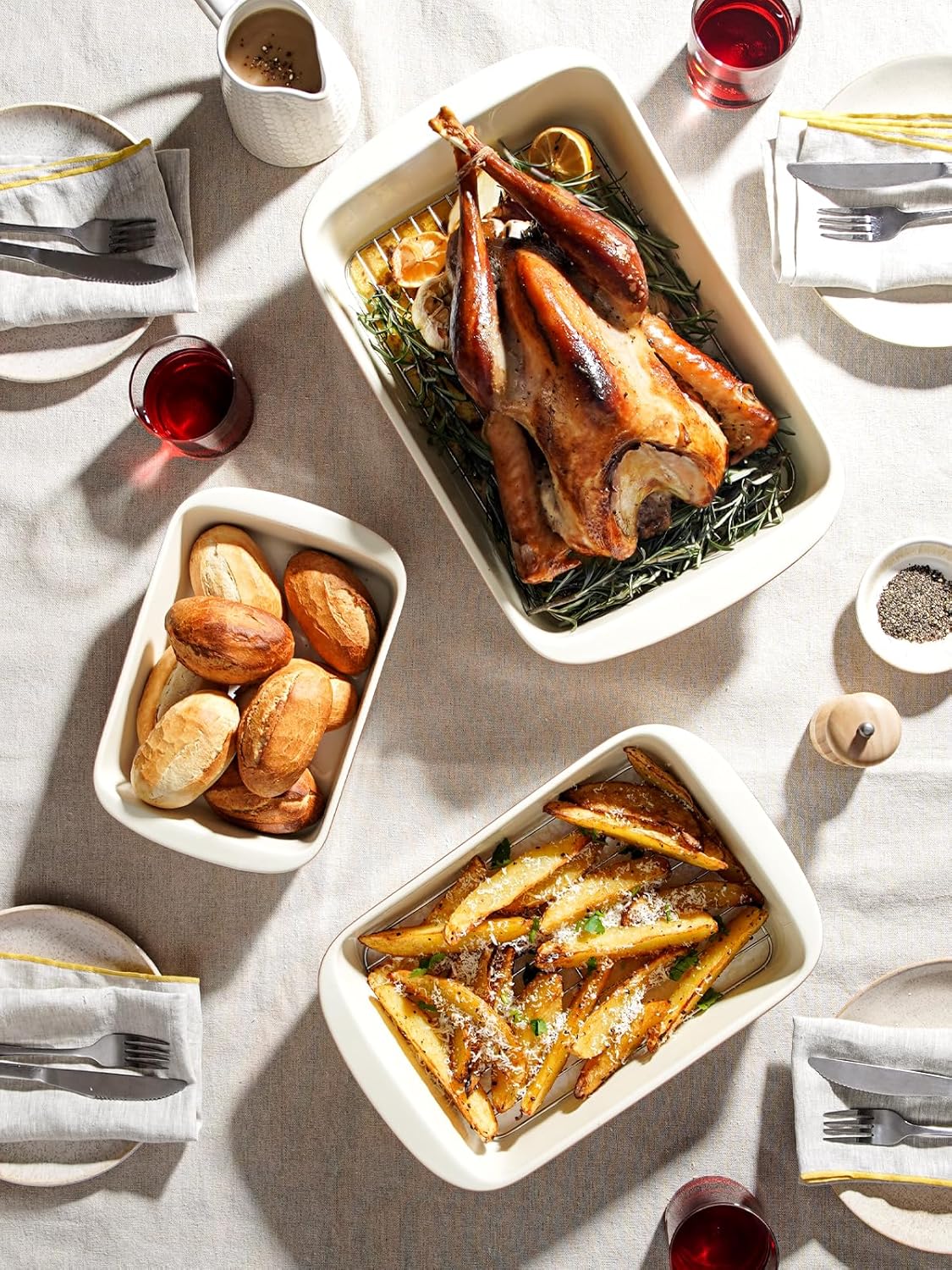 - Drip Racks for Healthier, Crispier Cooking: Each baking dish includes a matching oil-drip rack, perfect for roasting meats, bacon, and more. The racks help reduce excess grease, allowing you to cook delicious, healthier, and crispier meals