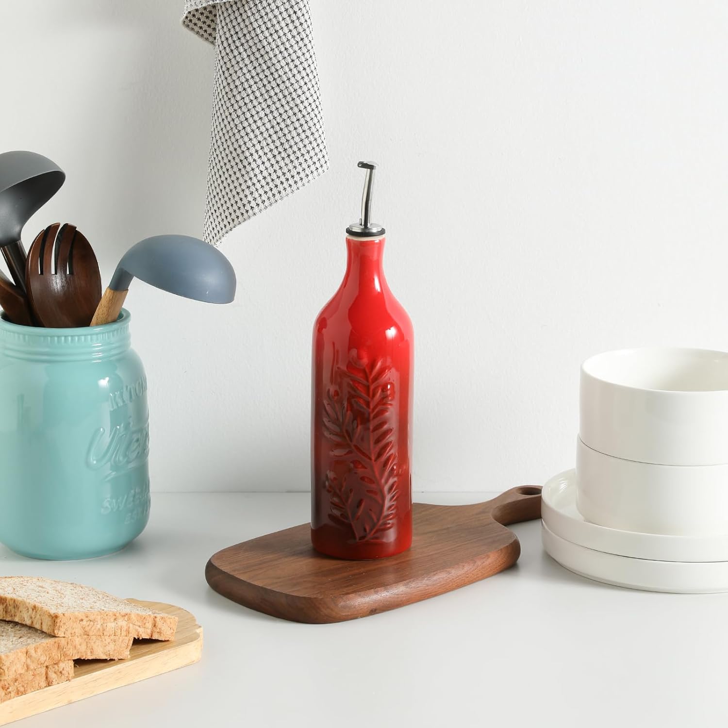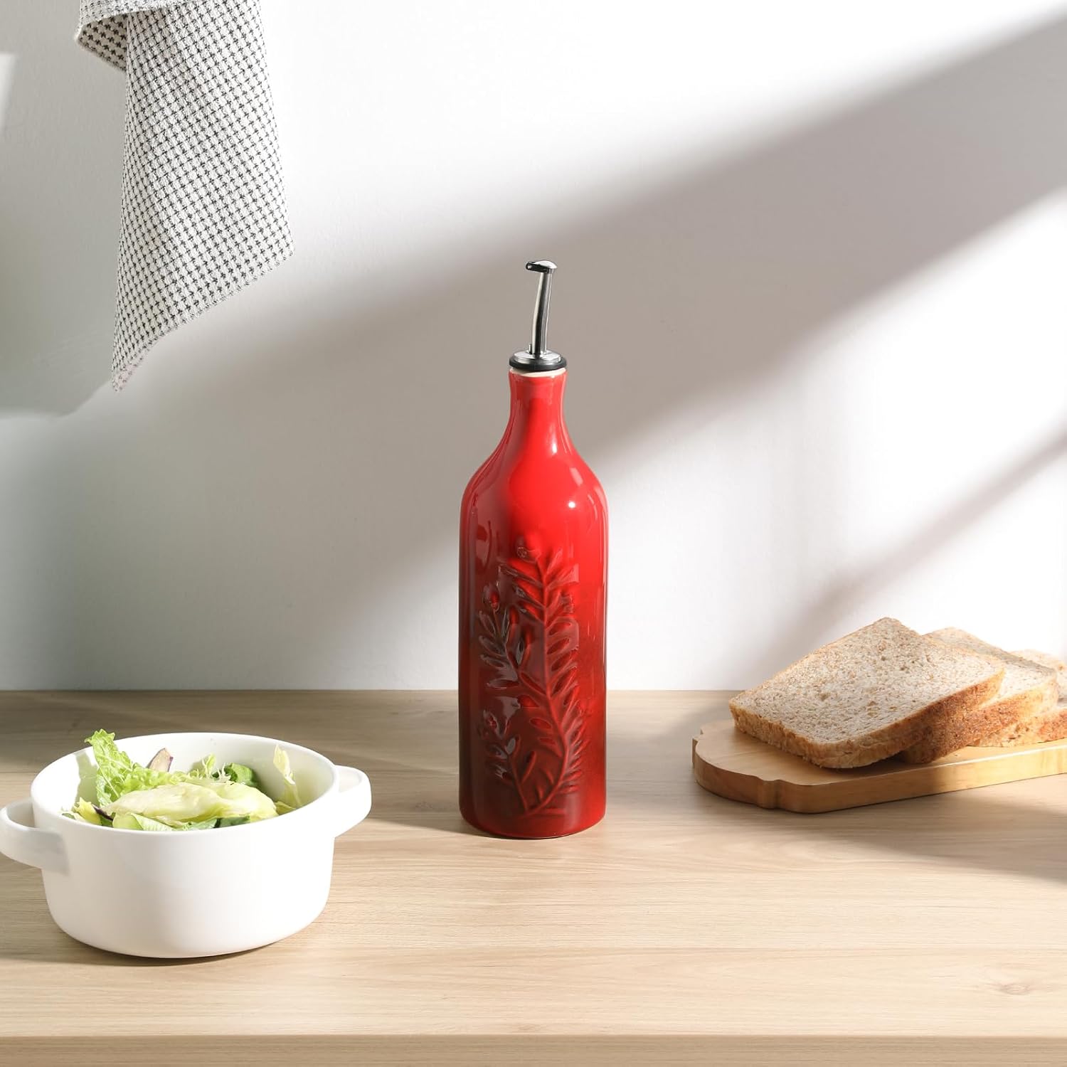Sweejar Large Olive Oil Dispenser Bottle with Spout, 24 Oz Ceramic Dispenser for Kitchen, Relief Opaque Cruet, Container for Cooking, EVOO, Avocado Oil, Vinegar, Pack of 1(GradientRed)