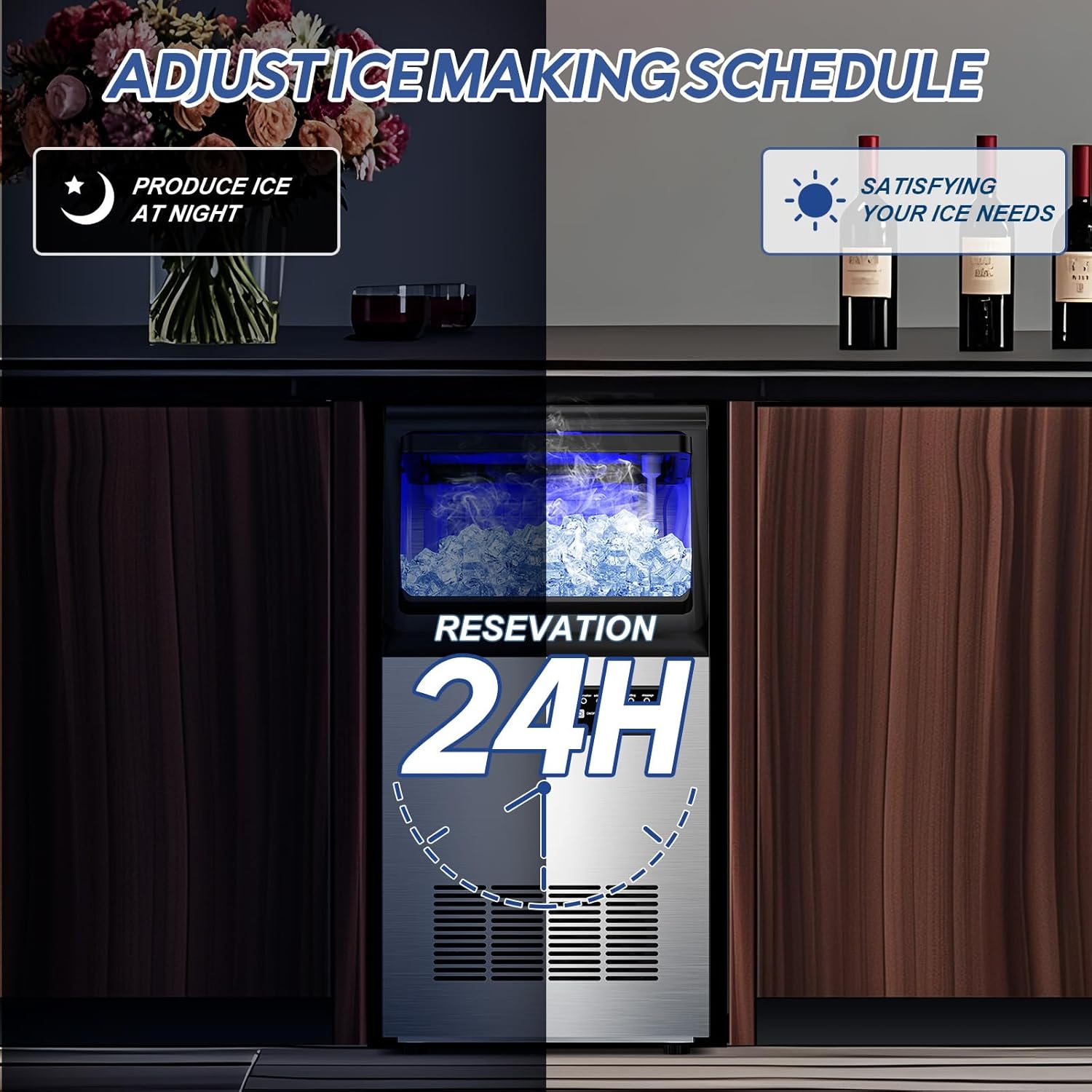- 【Quick Ice Making · Continuous High Yield】- Equipped with a powerful compressor, it can make 45 transparent ice cubes every 10-20 minutes, with a maximum output of 130 pounds in 24 hours, and a built-in 35-pound ice storage capacity, which can easily cope with family gatherings or business peaks.