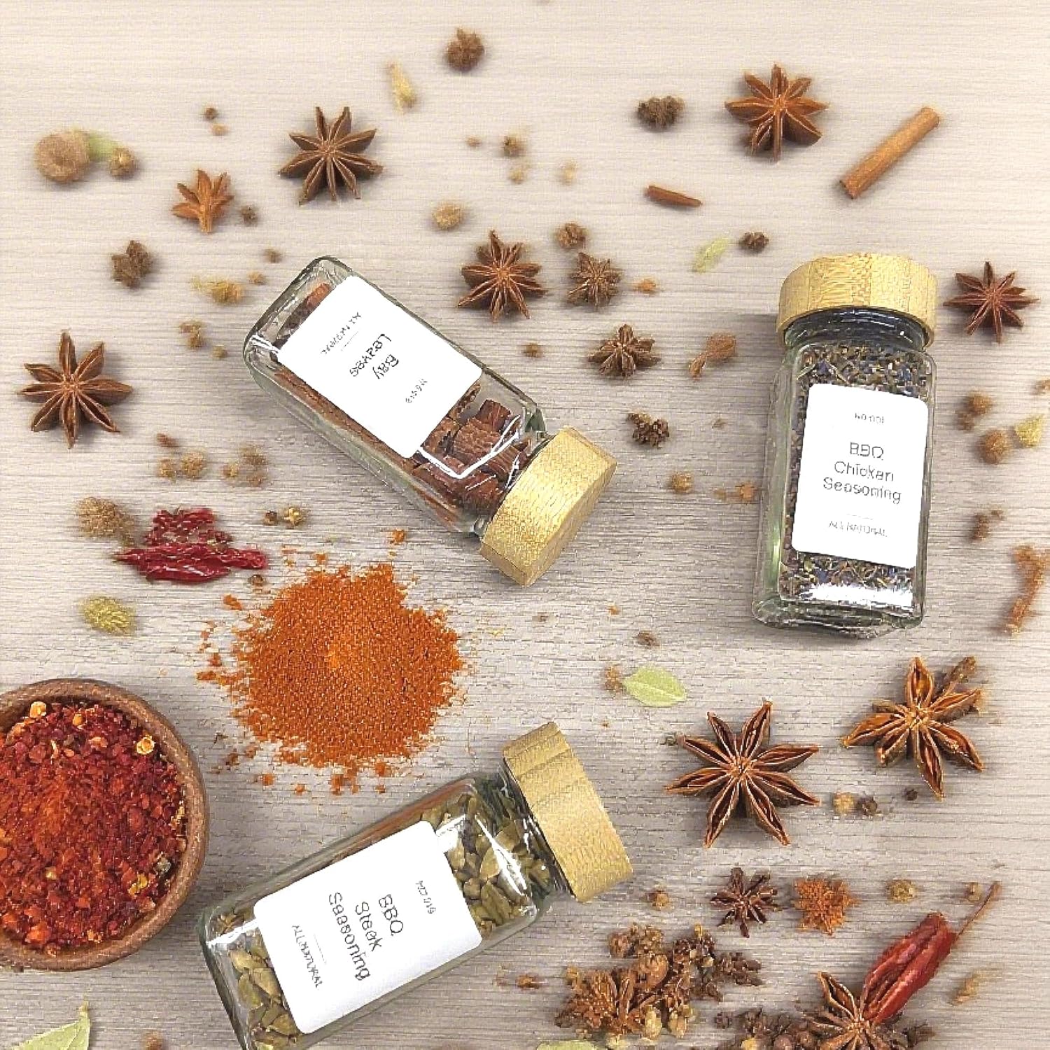 - 24 Glass Jars With Labels: Made of lead-free glass,capable of 4oz spices each; 2-in-1 shaker lid features sift and pour tops for light seasoning; 1 checklist,184 pre-printed spice labels and 32 blank labels for DIY, avoid hassle searching when labeling and cooking.