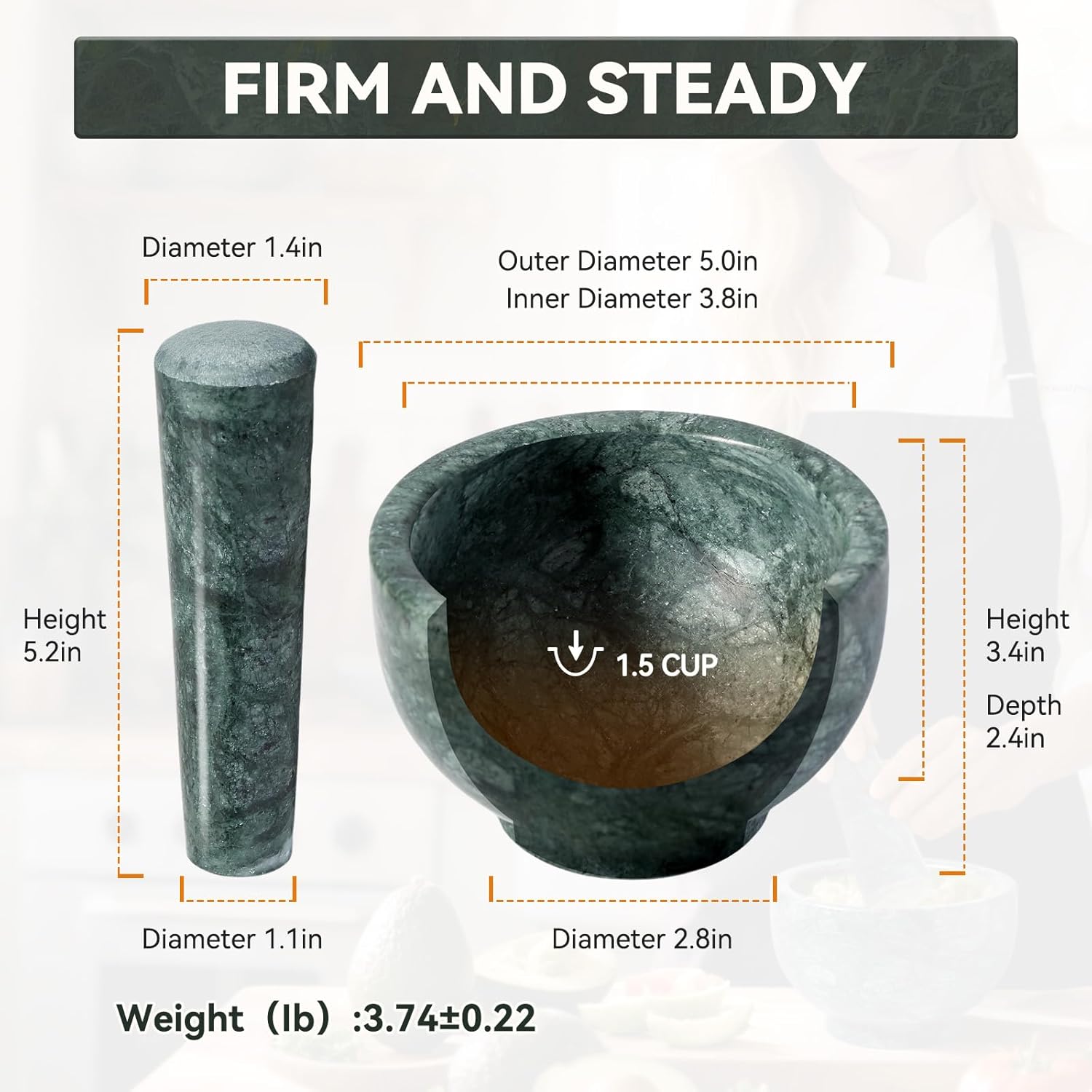 - 【Healthy and Safety】The marble mortar and pestle set is super safe in contact with food. Natural stone has superior safety properties that will not spoil the flavor of food or leave food residue, The external is well-polished, super easy to clean.