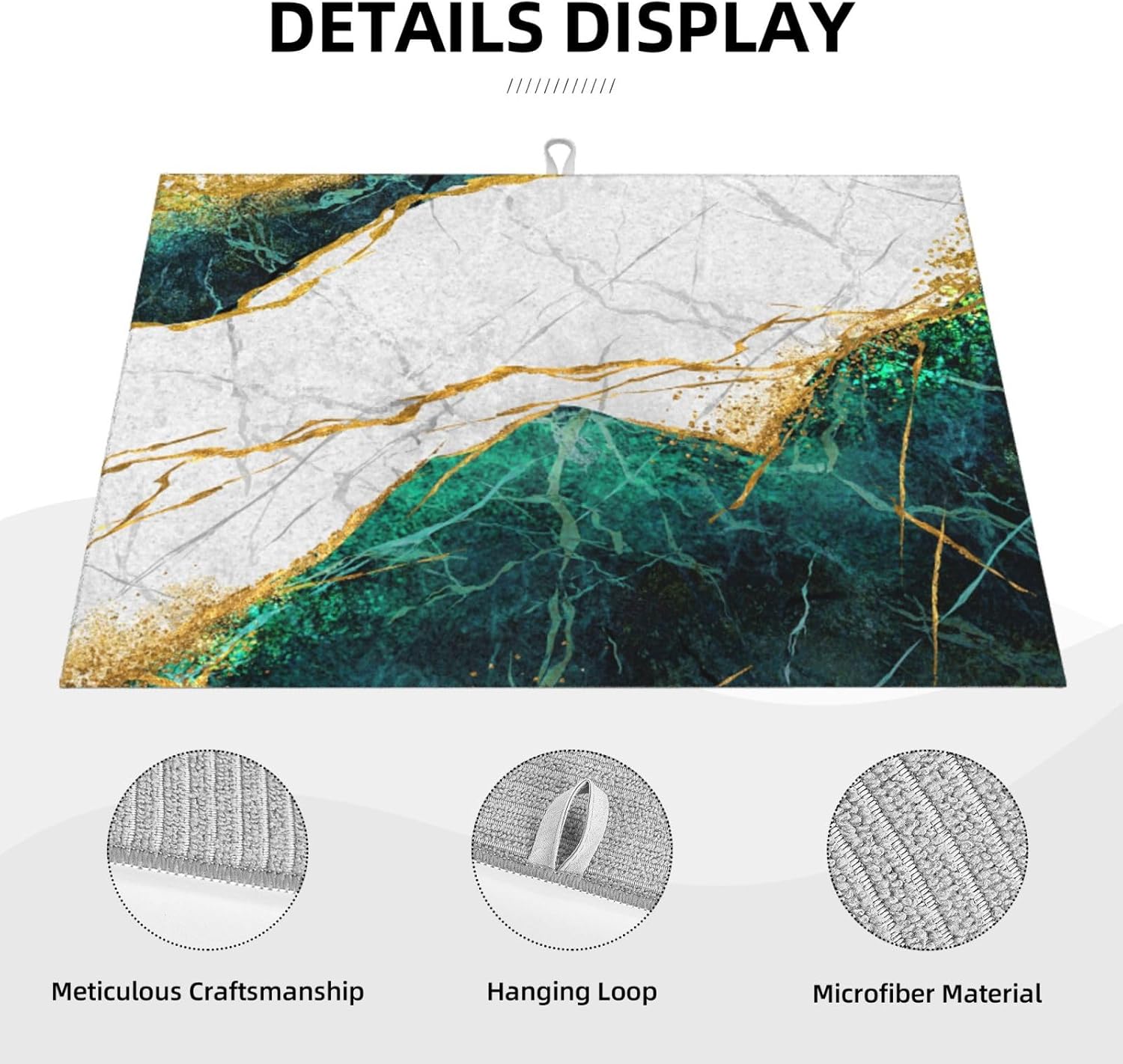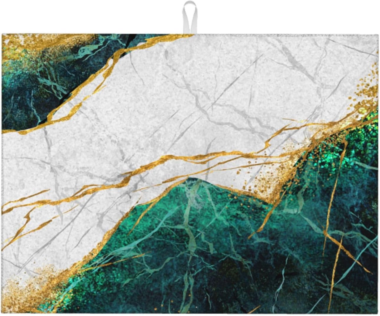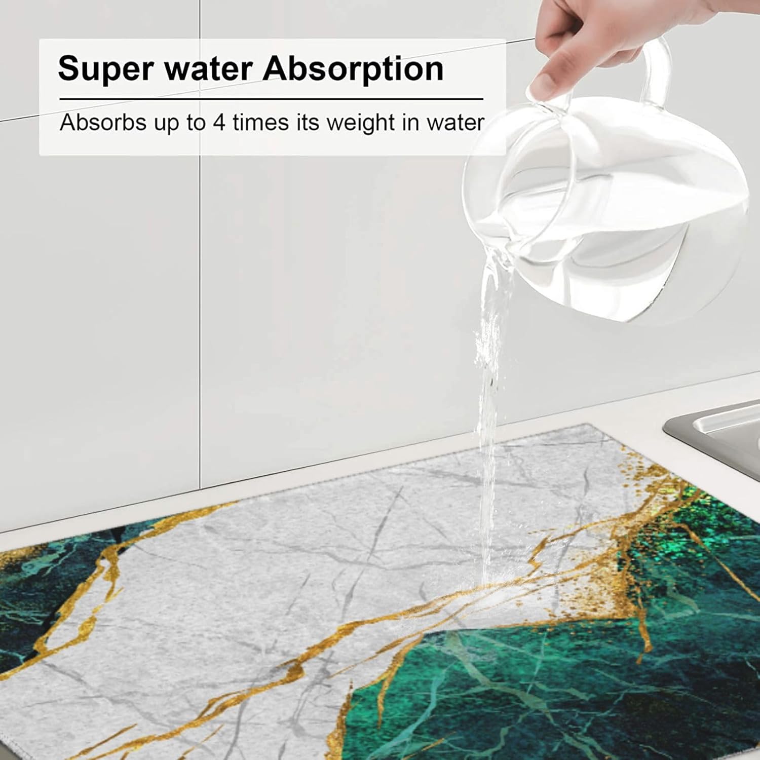 Marble Green Dish Drying Mat 18x24 for Kitchen Counter, Green White Modern Decorative Absorbent Coffee Mat Dish Drying Pad Coffee Bar Dish Drainer Rack Mat Drainer Mat
