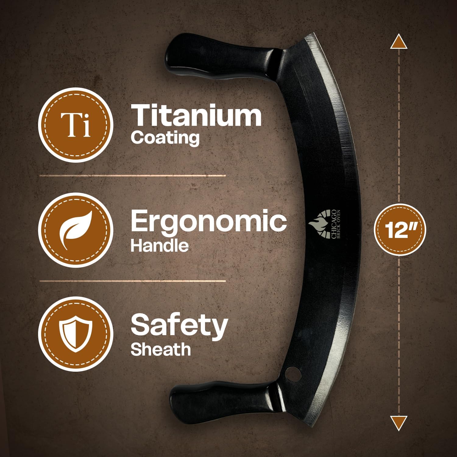 12-Inch Pizza Cutter Rocker Blade – Stainless Steel Mezzaluna Knife with Titanium Coating – Large Professional Pizza Cutter with Protective Cover – Dishwasher Safe