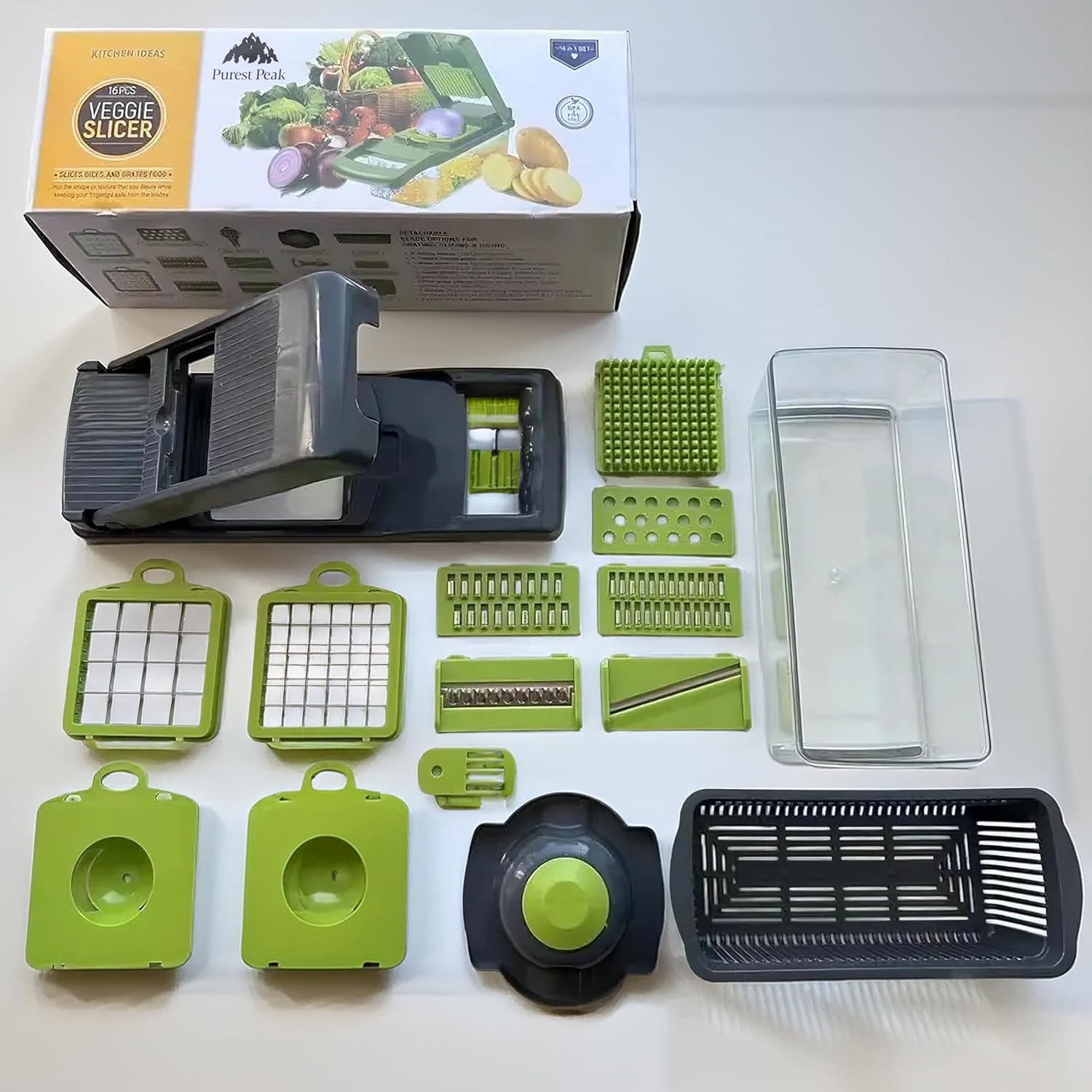 Vegetable Chopper with Container – 16-in-1 Food Dicer and Multi-Blade Cutter for Vegetables, Fruits, Cheese by Purest Peak