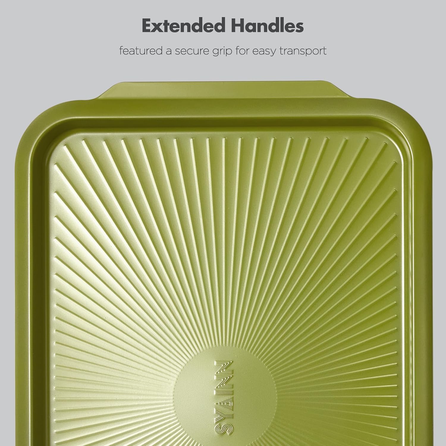 SYAINN Non-stick Ceramic Baking Sheet Set, 3 Pieces- Aluminum Steel Cookie Sheets for Baking-Includes Half/Quarter/Jelly Roll Pans-Warp Resistant, Toxic, PTFE & PFOA Free-Grenoble Green