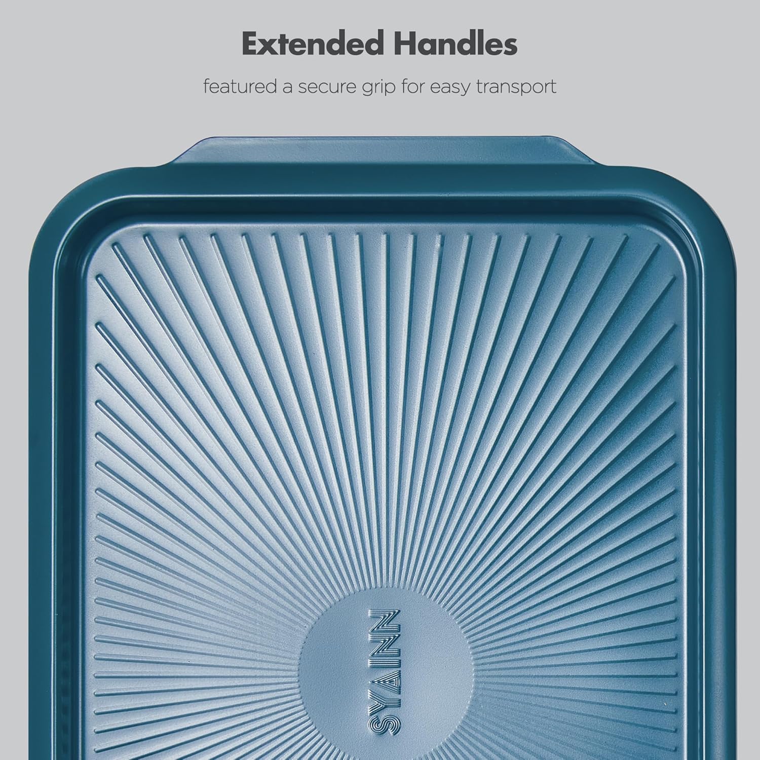 - Inspired by Retro-futurism - This oven pan features sleek, vintage curves and trendy matte colors, making it a stylish addition to your baking journey. The wide-edge folded handles ensure easy grip while saving storage space. The sun texture pattern on the base encourages airflow below the food. Rolled edges help keep it fairly warp-resistant when exposed to high heats and sudden temperature changes.