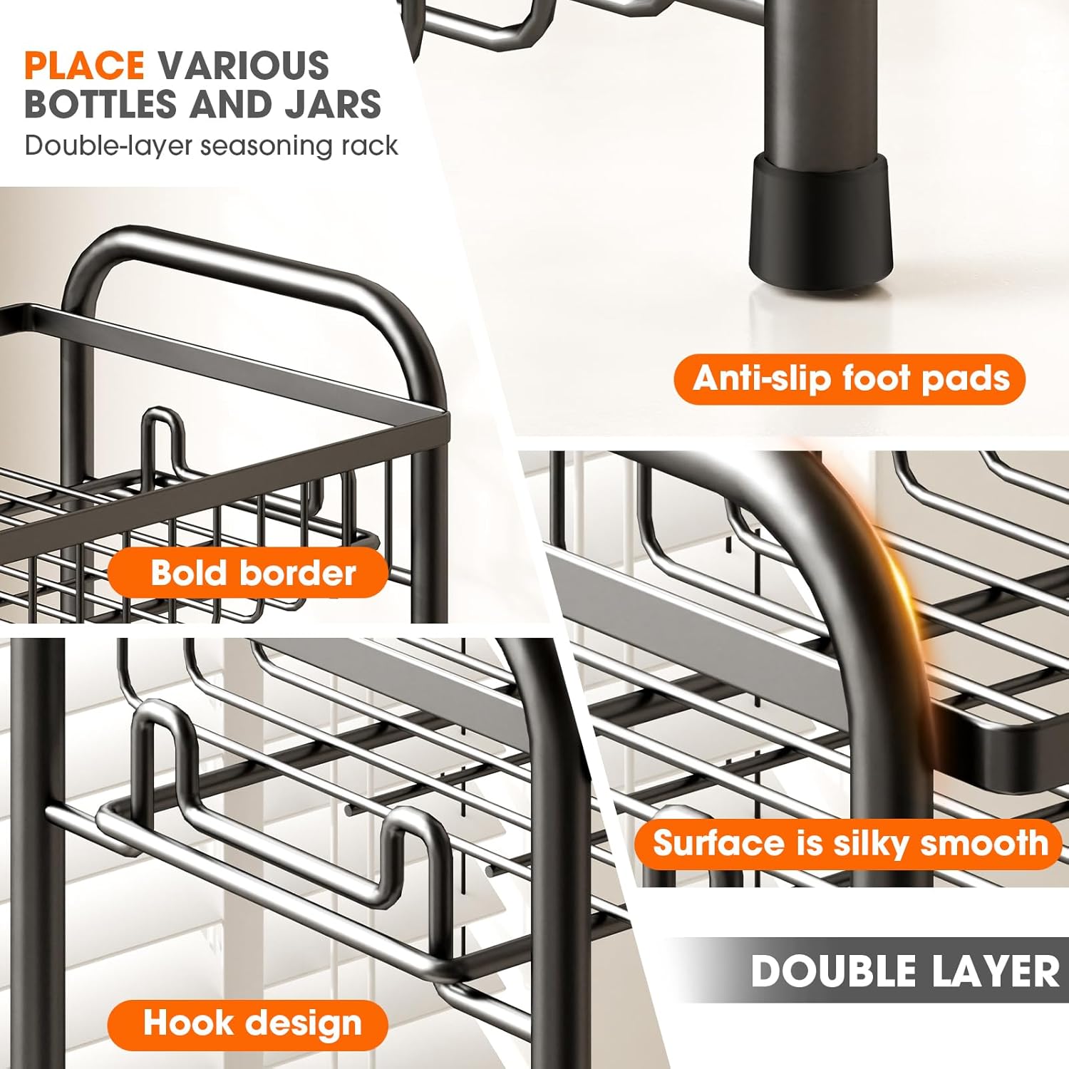 - 2-Tier Space Saver: Double-decker design maximizes storage while minimizing counter space. Keep spices organized & within reach without clutter