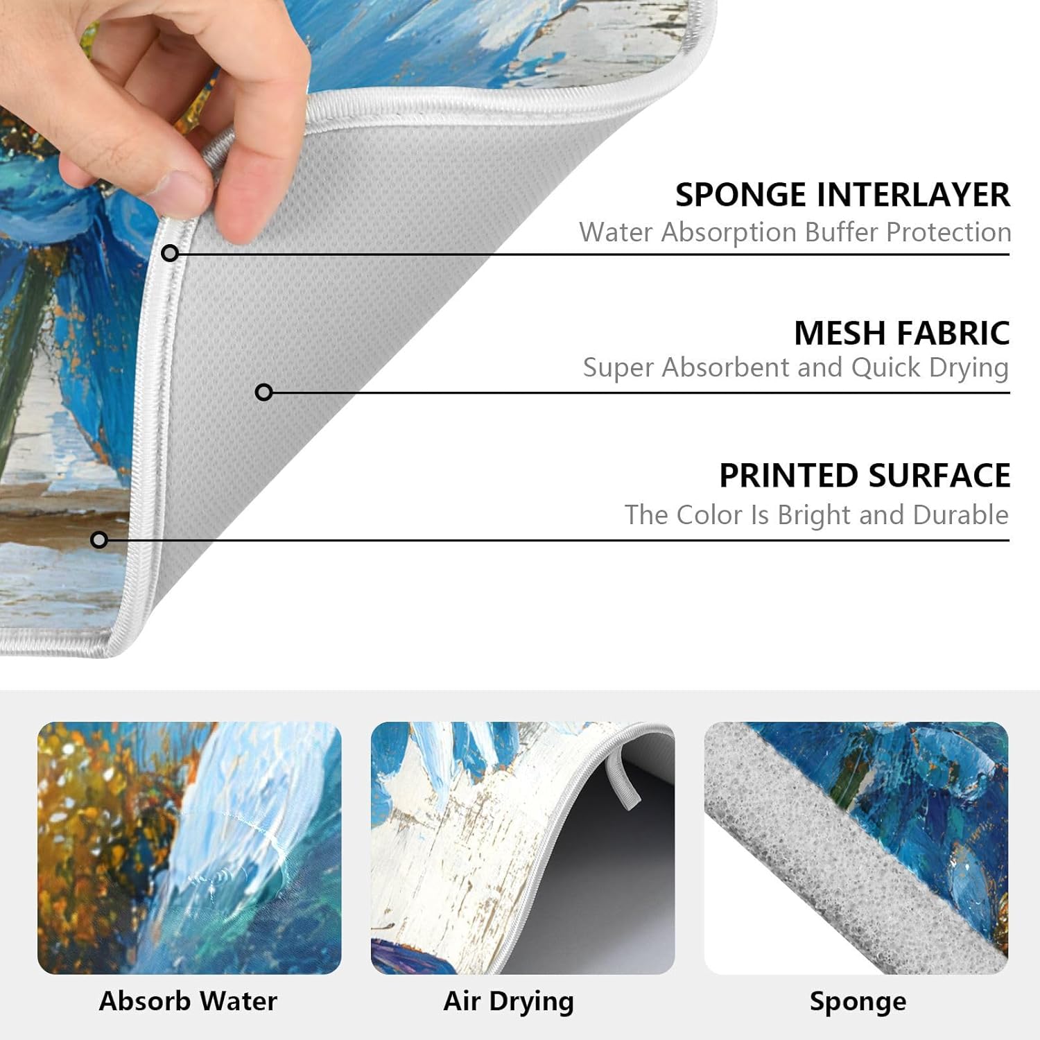- Exquisite workmanship: This dish drying mat with durable and neatly sewing around the edge helps contain spills, the stitches don't fall off so that they are reversible for convenience and optimal performance, but one-sided printing, matchs delicate dishes and stemware, bring decorations to your home or kitchen, keeping tables clean, the soft and foldable material is easy to store, this dry pad has a lanyard design, which can be hung up when you are not in use and does not take up space