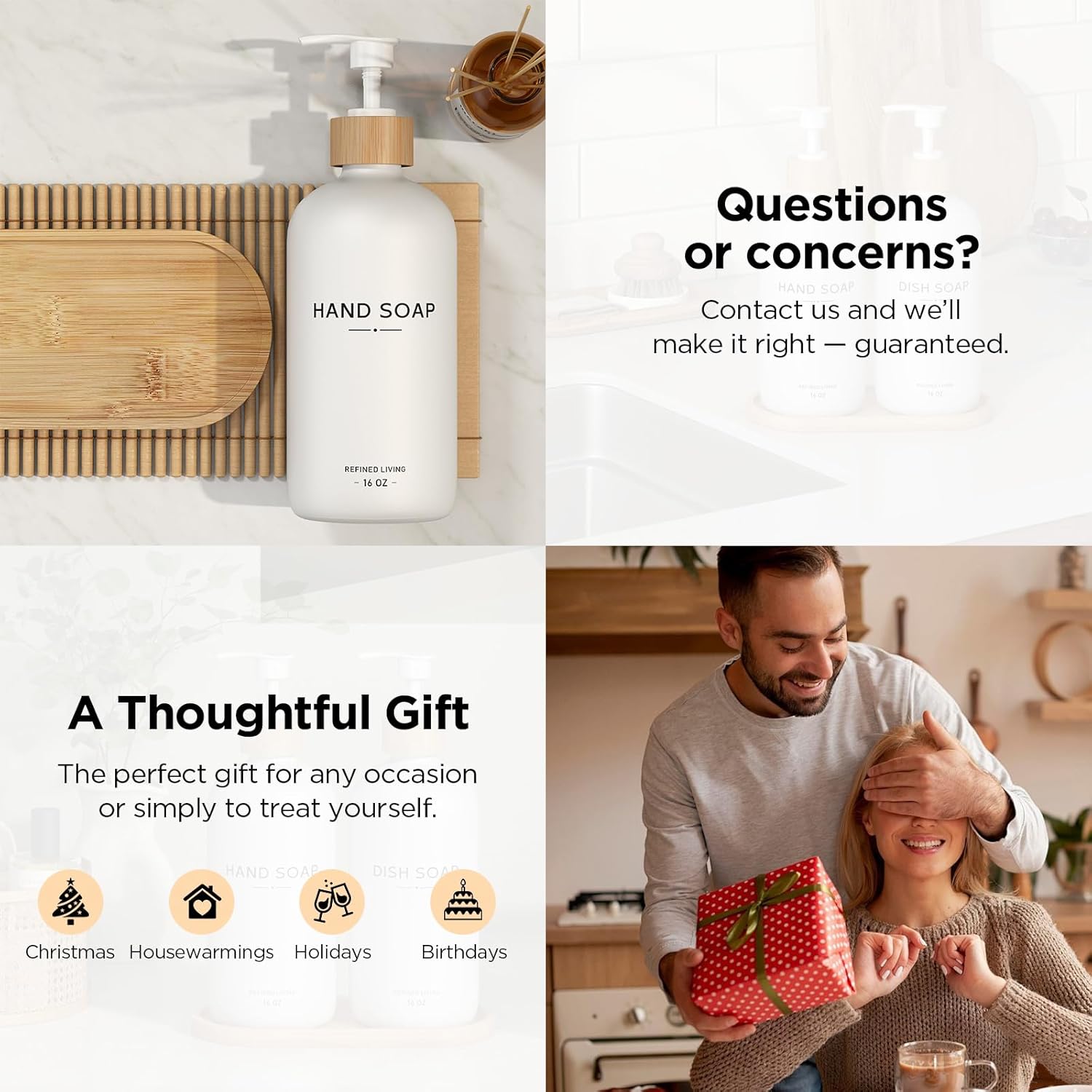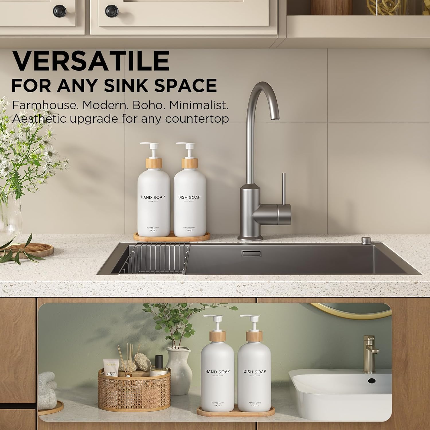 - 【DURABLE & REUSABLE】 – Refillable kitchen soap dispenser with BPA-free bamboo pumps and a handcrafted bamboo tray designed for long-term use—no rust, no waste, no compromise.