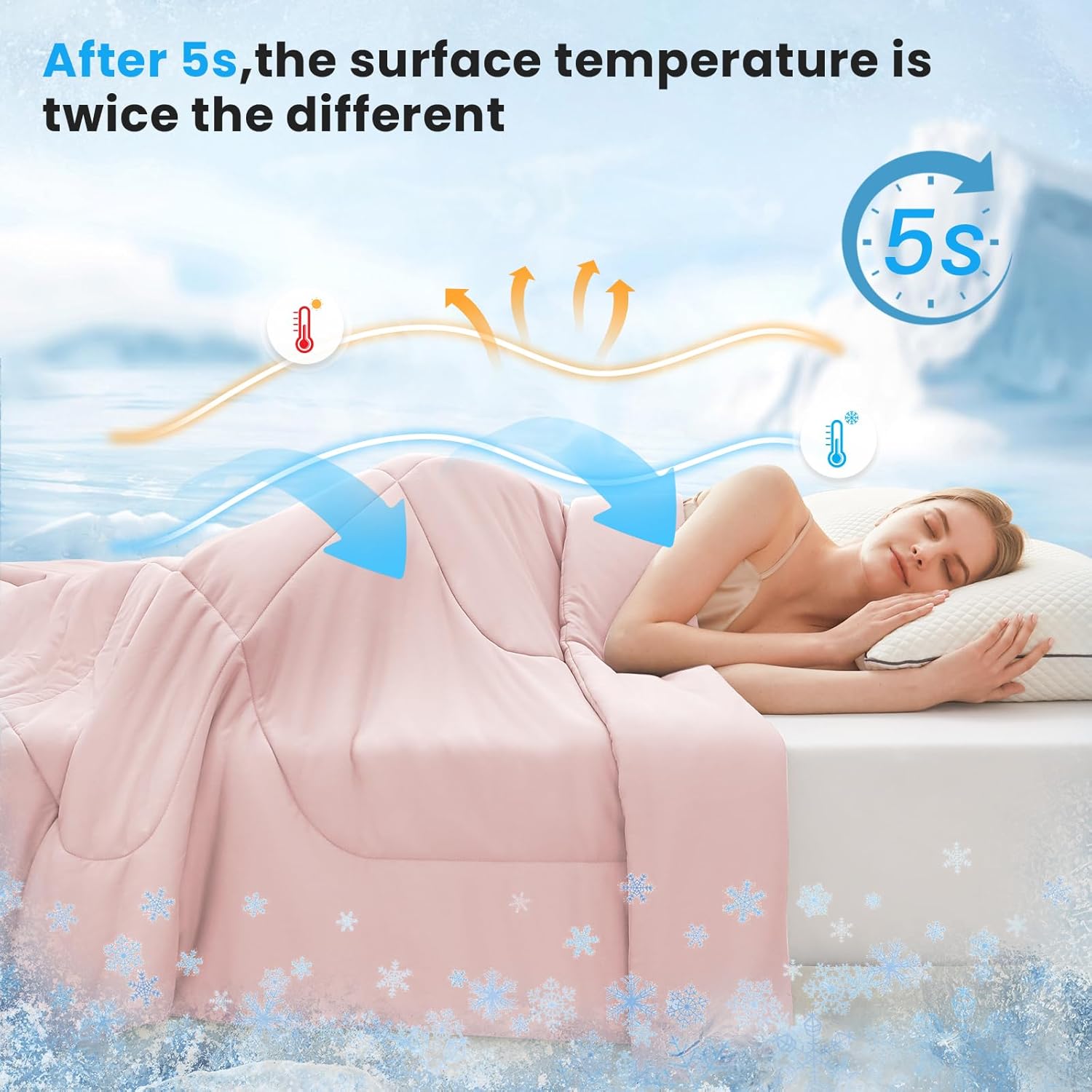 - Cooling blanket for hot sleepers - Designed with latest thermal regulation technology, this cooling blanket can quickly absorb body heat and immediately reduce the skin temperature by 2~5 degrees, ensures a consistently cool sleep environment, makeing you wake up refreshed, comfortable and dry — no sticky feeling. A real summer comforter for hot sleepers