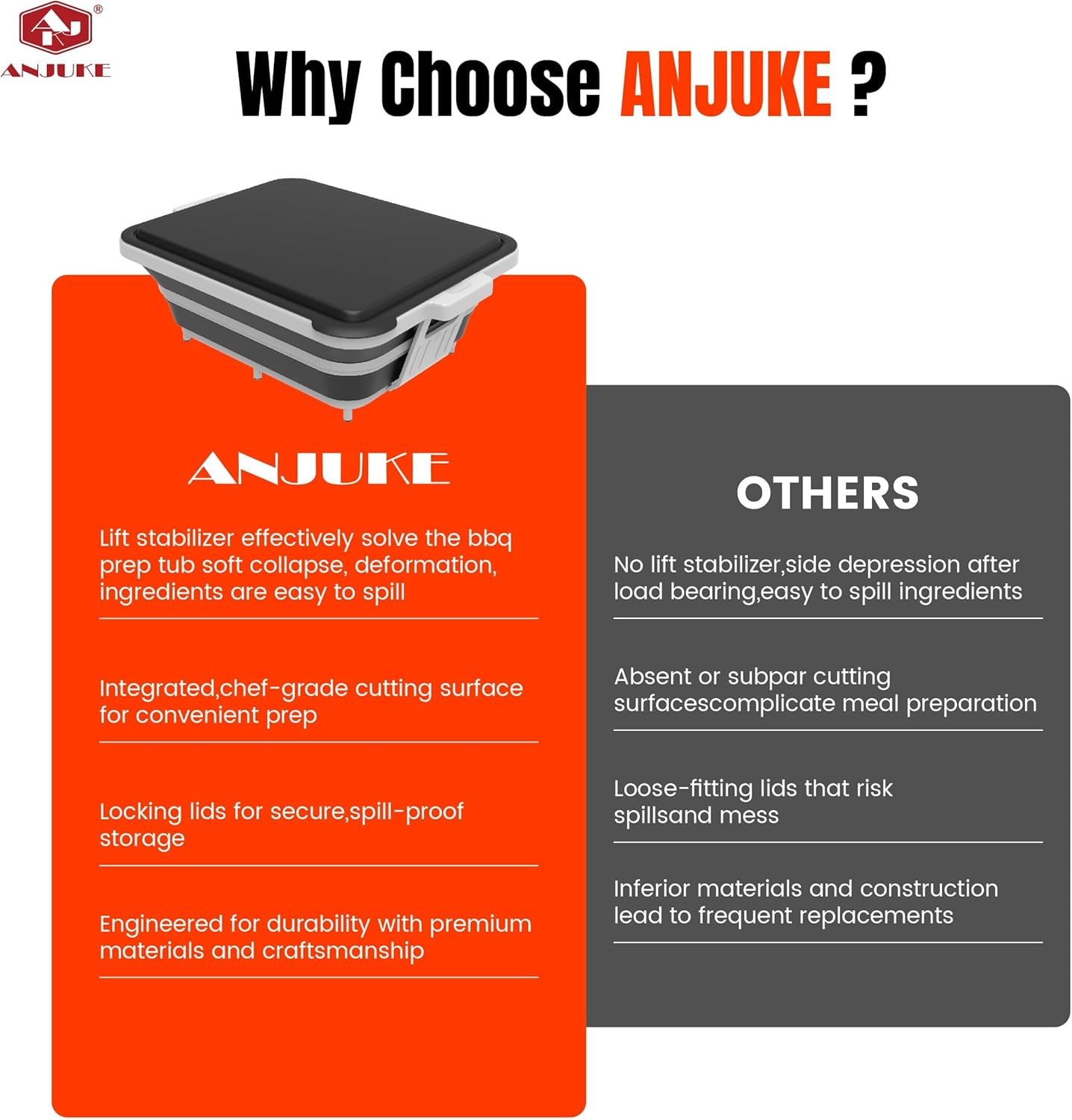 - Ready for Outdoor Entertaining — Built for BBQ hosts and outdoor cooks: use as a camping sink/colander to rinse fruits, vegetables and utensils — perfect for outdoor food prep. a marinade tub for meats, a chopping board for quick prep, or flip to chill drinks. Boosts efficiency and keeps your prep area clean and organized.