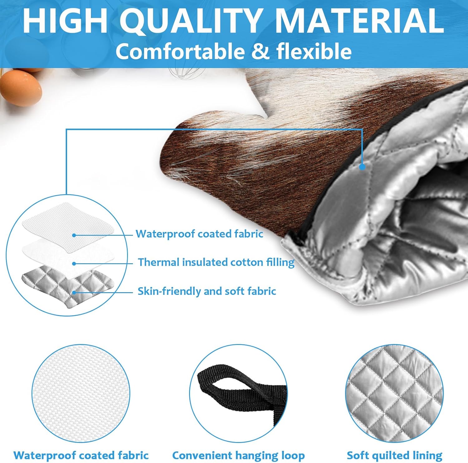 Brown Cow Print Oven Mitts and Pot Holders Sets Heat Resistant 4Pcs Potholders Oven Gloves Hot Pads for Kitchen Baking Cooking Grilling BBQ