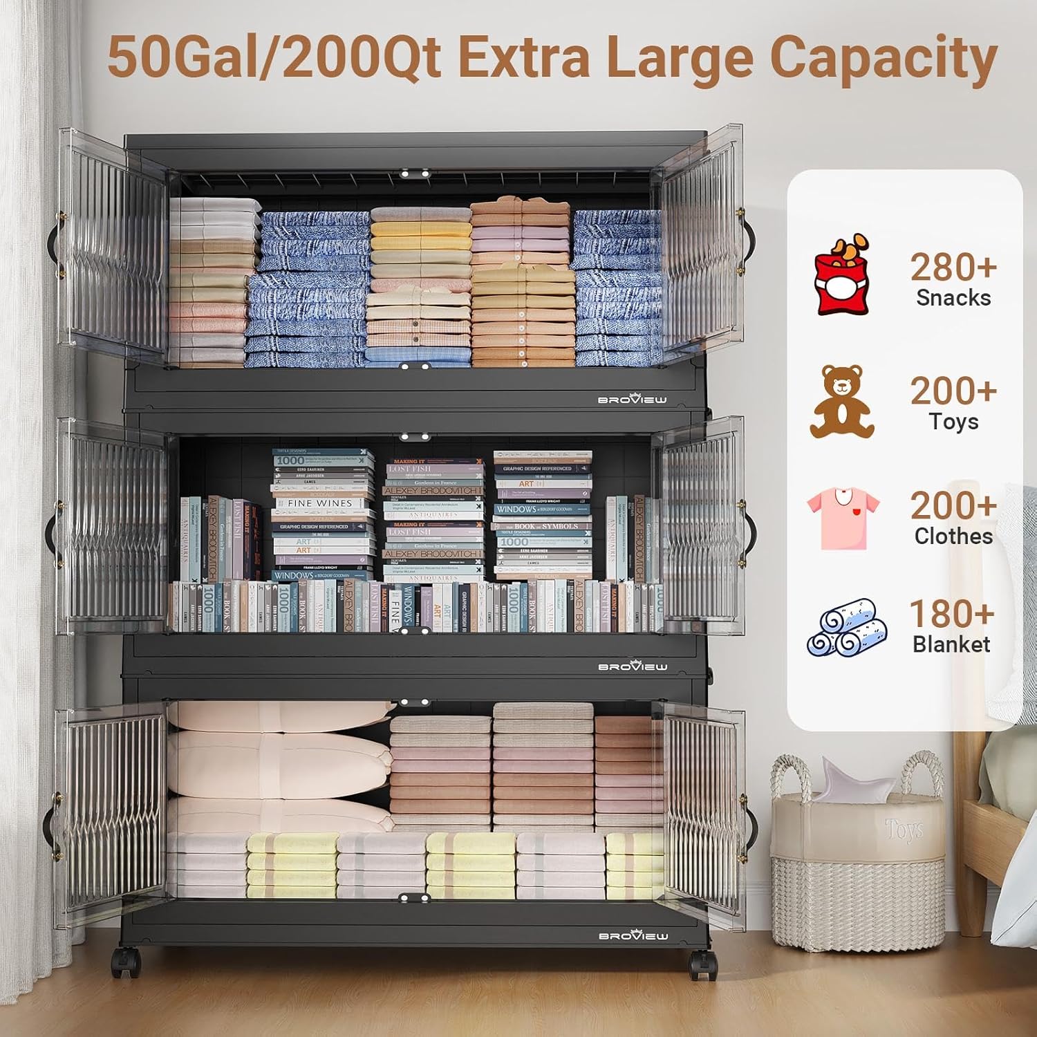 - 【5 Mins Easy Assembly & Warm Tips】The stackable storage bins open front only take 5 minutes to assemble the entire storage cabinet. Thanks to the foldable and stackable design, Broview v8 stackable storage bins can be disassembled and folded at any time when not in use. Warm Tips: Currently only 120QT black come with multi Lid, other need to be purchased separately.
