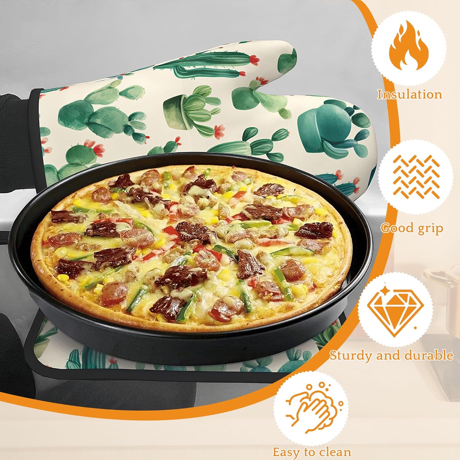 Cactus Succulent Flower Oven Mitts and Pot Holders Set,Kitchen Decor Heat Resistant Non Slip Hot Pads and Oven Mitt for Chef Cooking Baking BBQ Mom Girl Gifts(4 Piece Set)