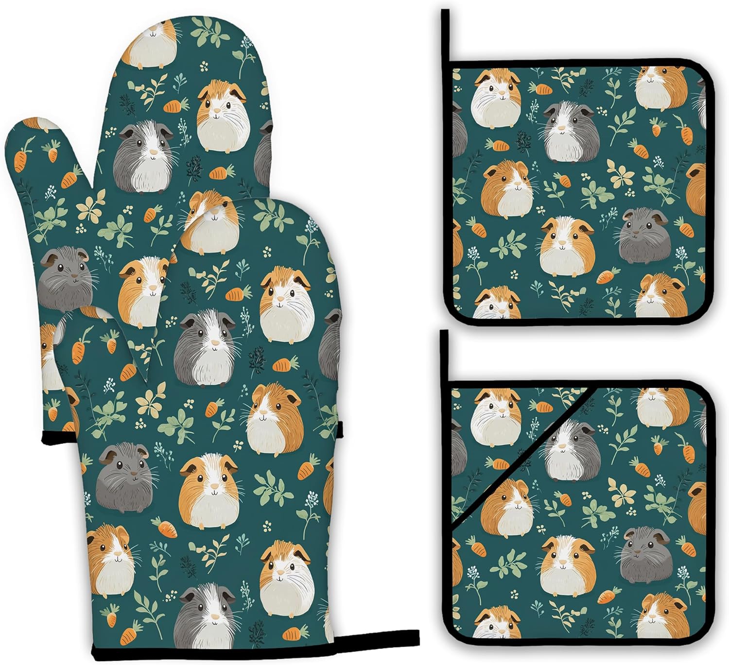 Cute Guinea Pig Oven Mitts and Pot Holders,Heat Resistant Oven Mitts Gloves and Pot Holder for Home Kitchen Decorations Cooking Baking BBQ Gifts,Set of 4