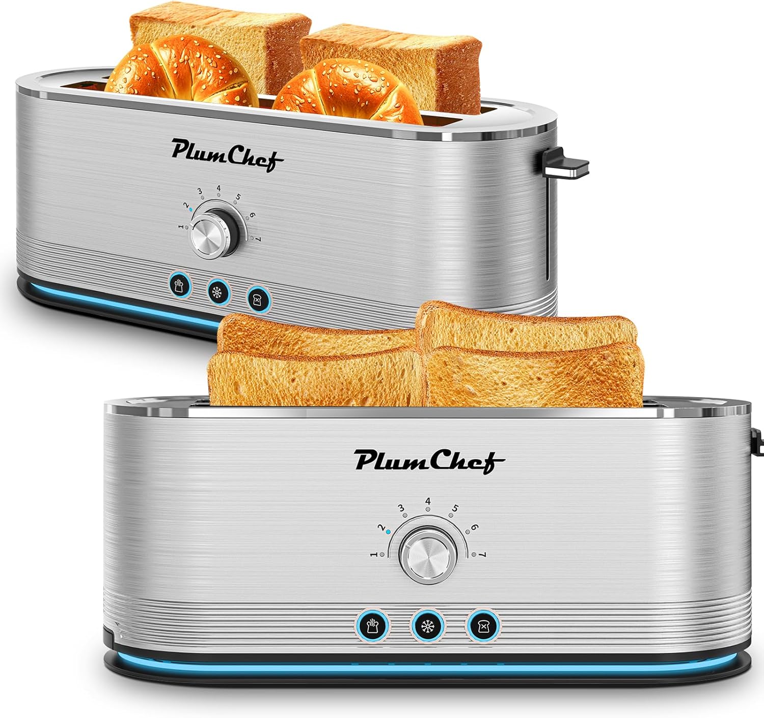 - Premium Stainless Steel Design – Built to last with a full-body stainless steel construction and brushed anti-fingerprint finish for a sleek, scratch-resistant look. The standard slot size fits most bread types, while the optional LED light strip at the base adds a modern, stylish touch to your kitchen.
