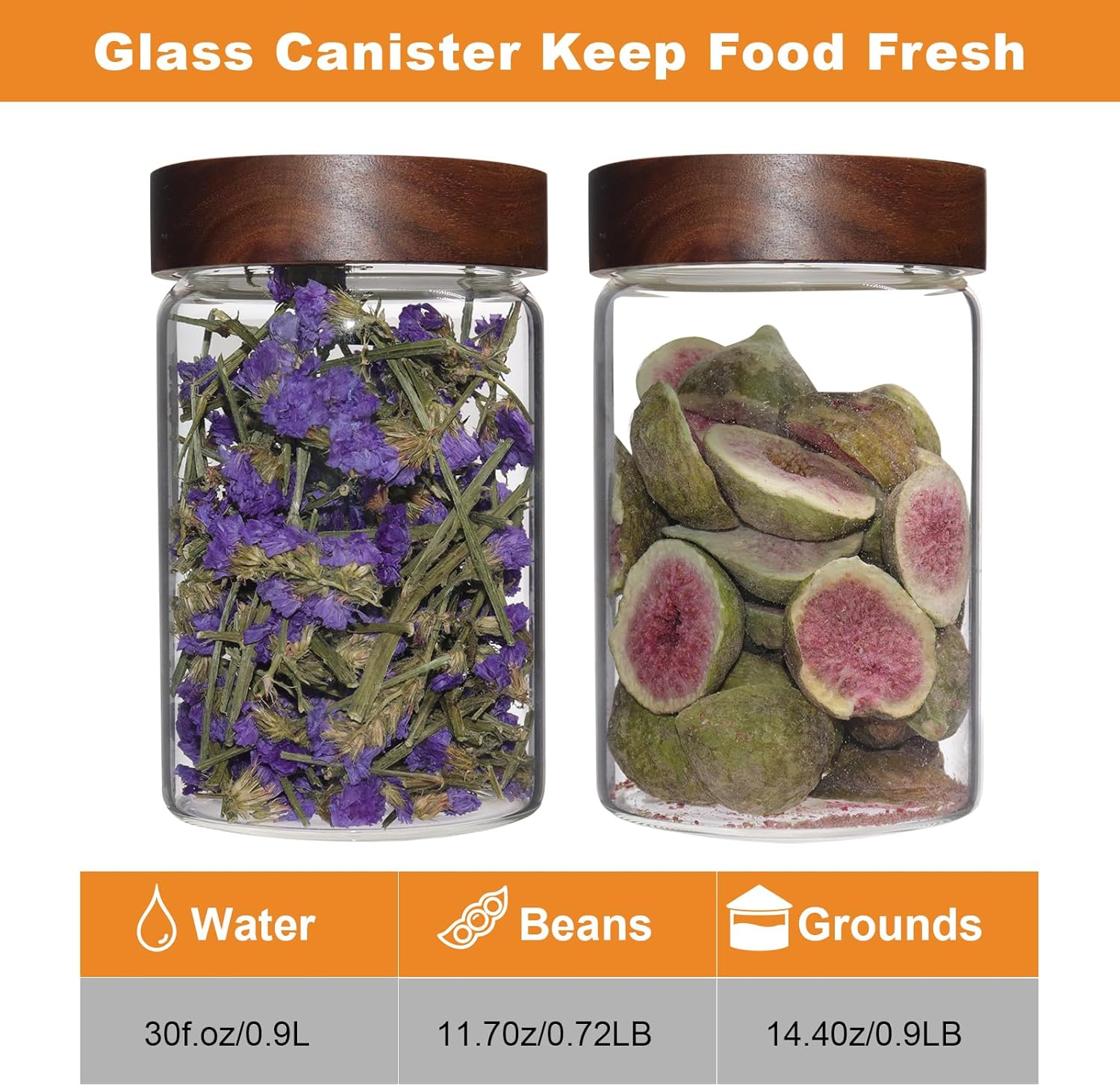- 【WIDE APPLICATIONS】 Glass kitchen container for pantry organization and storage are suitable for storing various dried ingredients to retain their freshness, with clear glass jars, you can easily see inside and quickly find the ingredients you need.Glass jars with wood lids perfect for storing dry food , such as,cookies,dried beans,pepper,oatmeal,jams,chutneys, rice, flour, tea, coffee, biscuits, candy,cheese,flour, sugar, seeds,etc. Keep your kitchen tidy and safe,saving space and convenient .