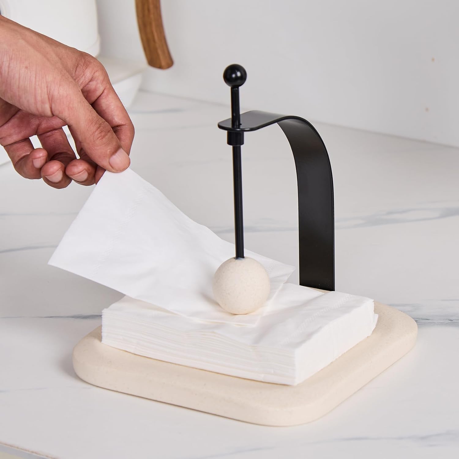 Beige Sand Stone Napkin Holder - Decorative Square Paper Napkin & Towel Holder for Kitchen, Restaurant, Bathroom - Durable Resin Table Organizer - Stylish Home Gift