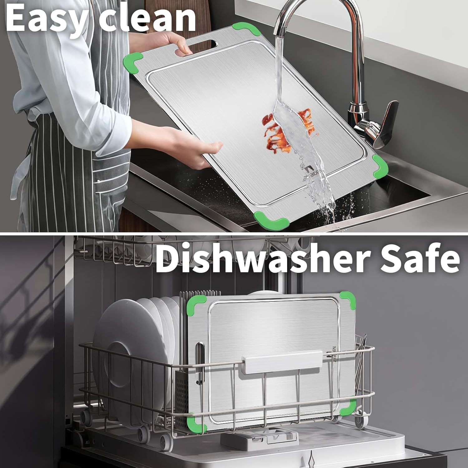 - Upgraded Removable Silicone Non-slip Corner Pad- solves the disadvantage of ordinary titanium chopping boards that are easy to slip with the countertop and not easy to pick up when in use.