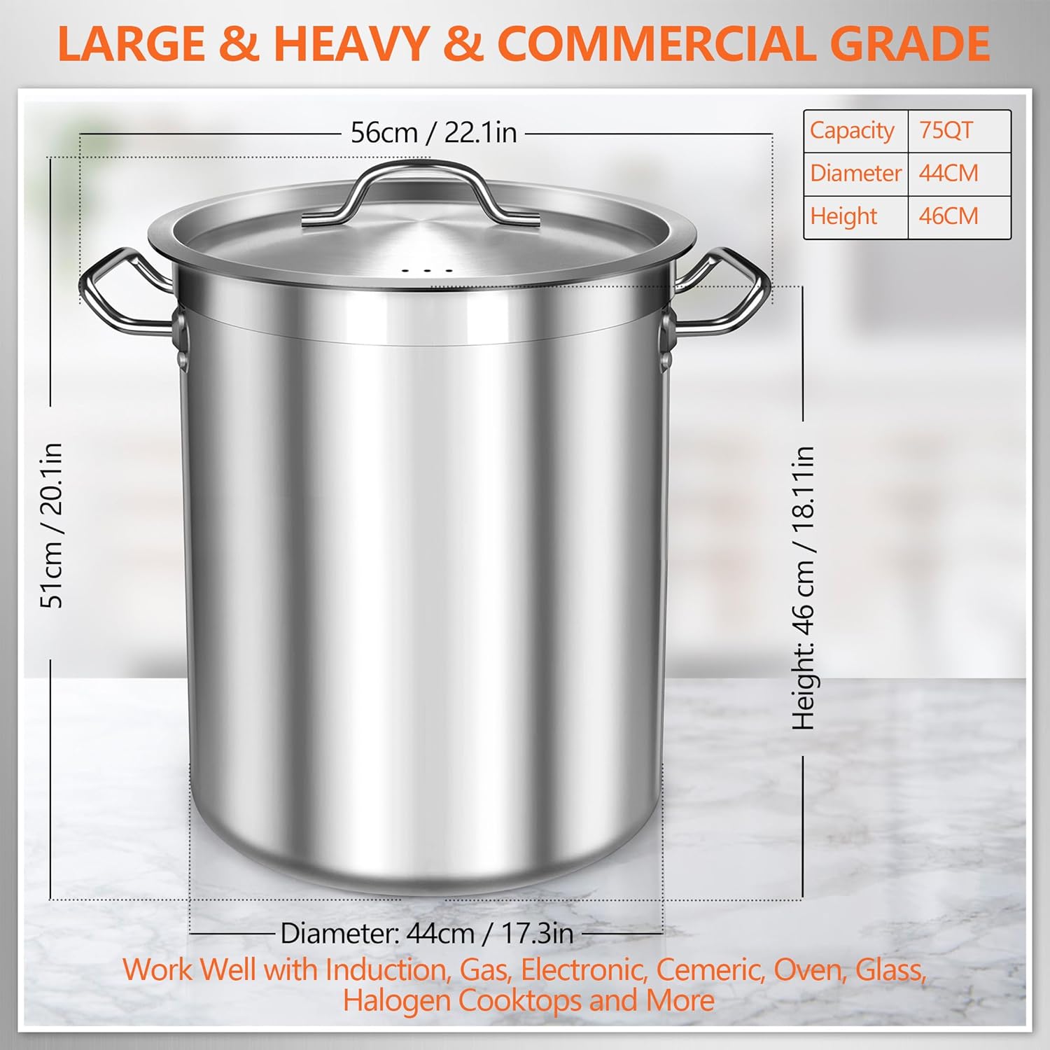 75 Quart Stainless Steel Stock Pot with Lid – Extra Large Commercial Cooking Pot for Soup, Stew, Seafood – Heavy Duty, Induction Ready – Perfect for Restaurants & Big Gatherings